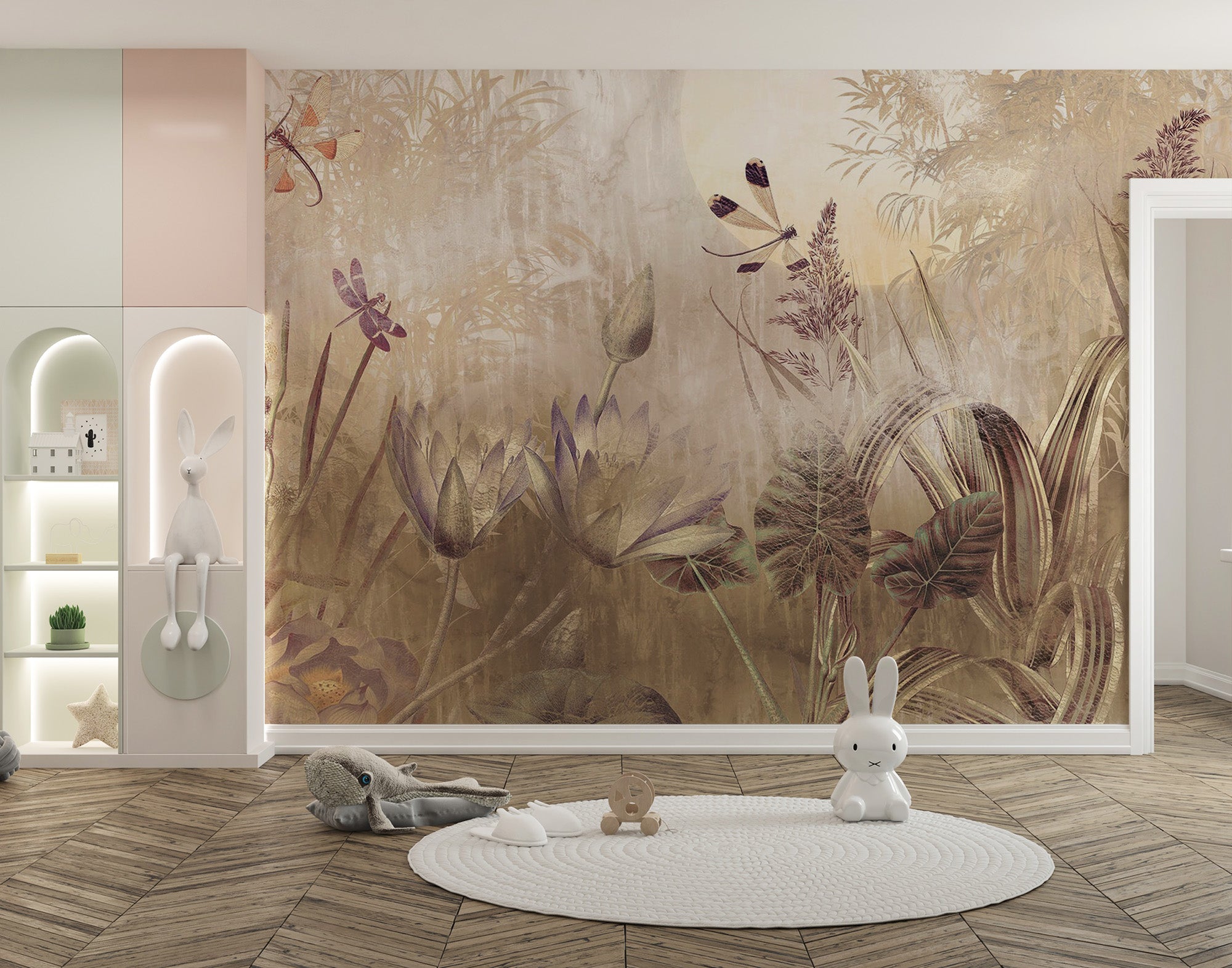 Serene dragonfly pond mural