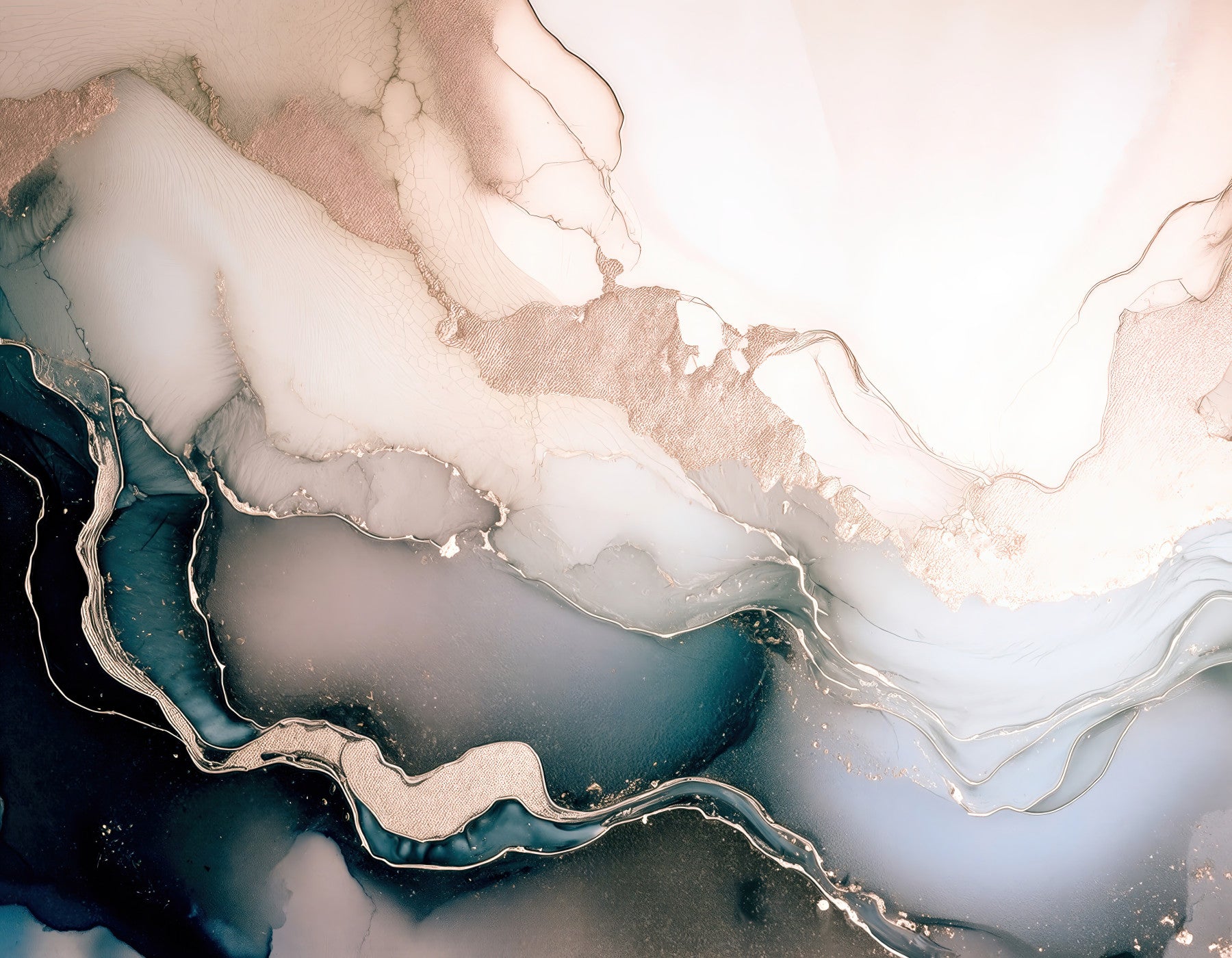 Luxury marble-inspired mural blending dreamy mineral layers and warm rose gold highlights.