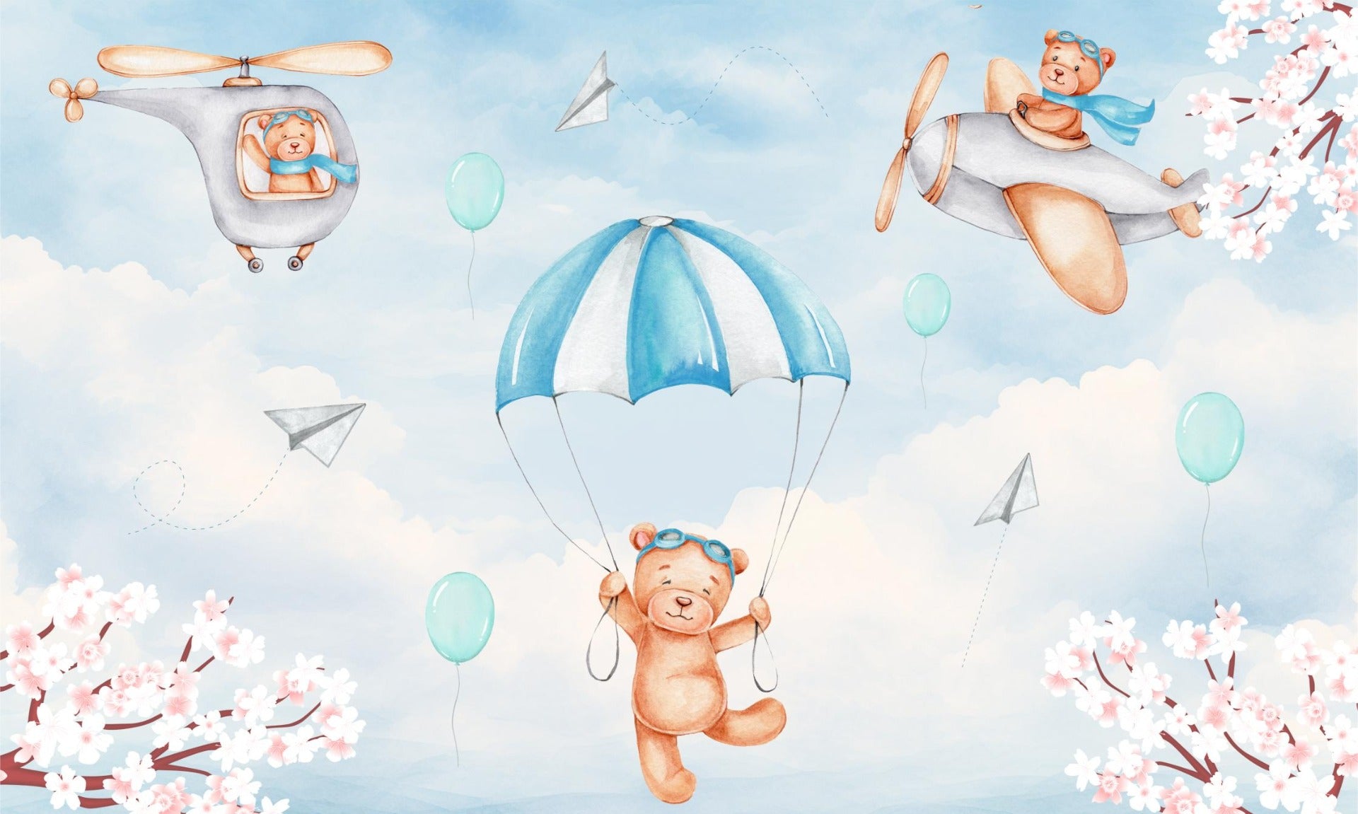 Our dreamy sky adventure wall mural collection sweeps your child into a vibrant world of imagination where teddy bears pilot planes among the clouds. Perfect for kids who dream of high-flying adventures, this kids wallpaper is designed to endure the excitement of childhood while being simple to clean and maintain. With a palette that stimulates both study and play, our murals offer a blend of education and entertainment. Shop for our wide range of designs today and gift your child a daily dose of adventure, shipped directly to your door with our complimentary Free Shipping service. Shop for our range today and transform your child's bedroom into a sky high adventure!