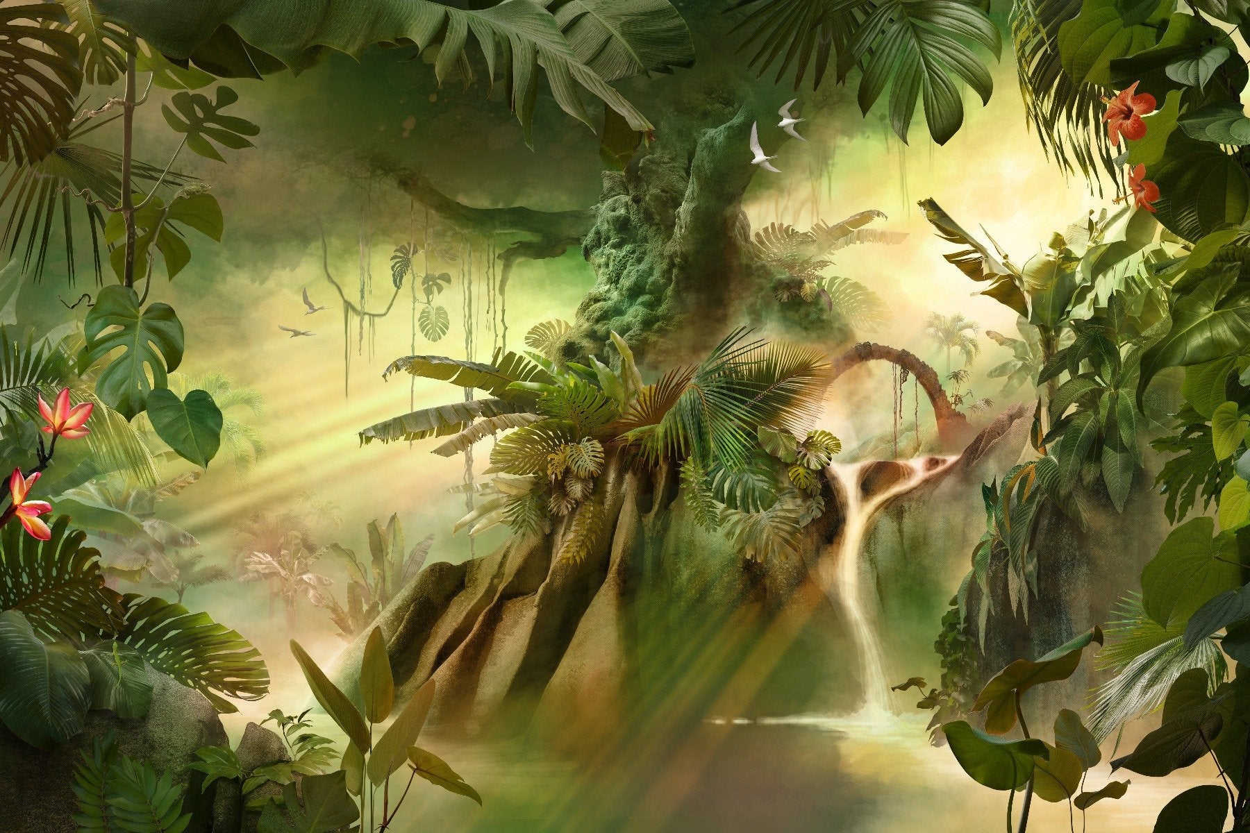 Welcome to a magical world of lush foliage and wonder with our natural dreamy forest mural wallpaper. With this stunning addition to your décor, you will feel transported to a mystical jungle where the leaves whisper secrets to the wind. The rich green hues of the lush leaves and the tendrils of creeper vines will infuse your space with repose and peace. With natural textures and intricate patterns, this wallpaper will add depth and character to any room. So why wait? Embrace the beauty of the forest with our awe-inspiring mural wallpaper.