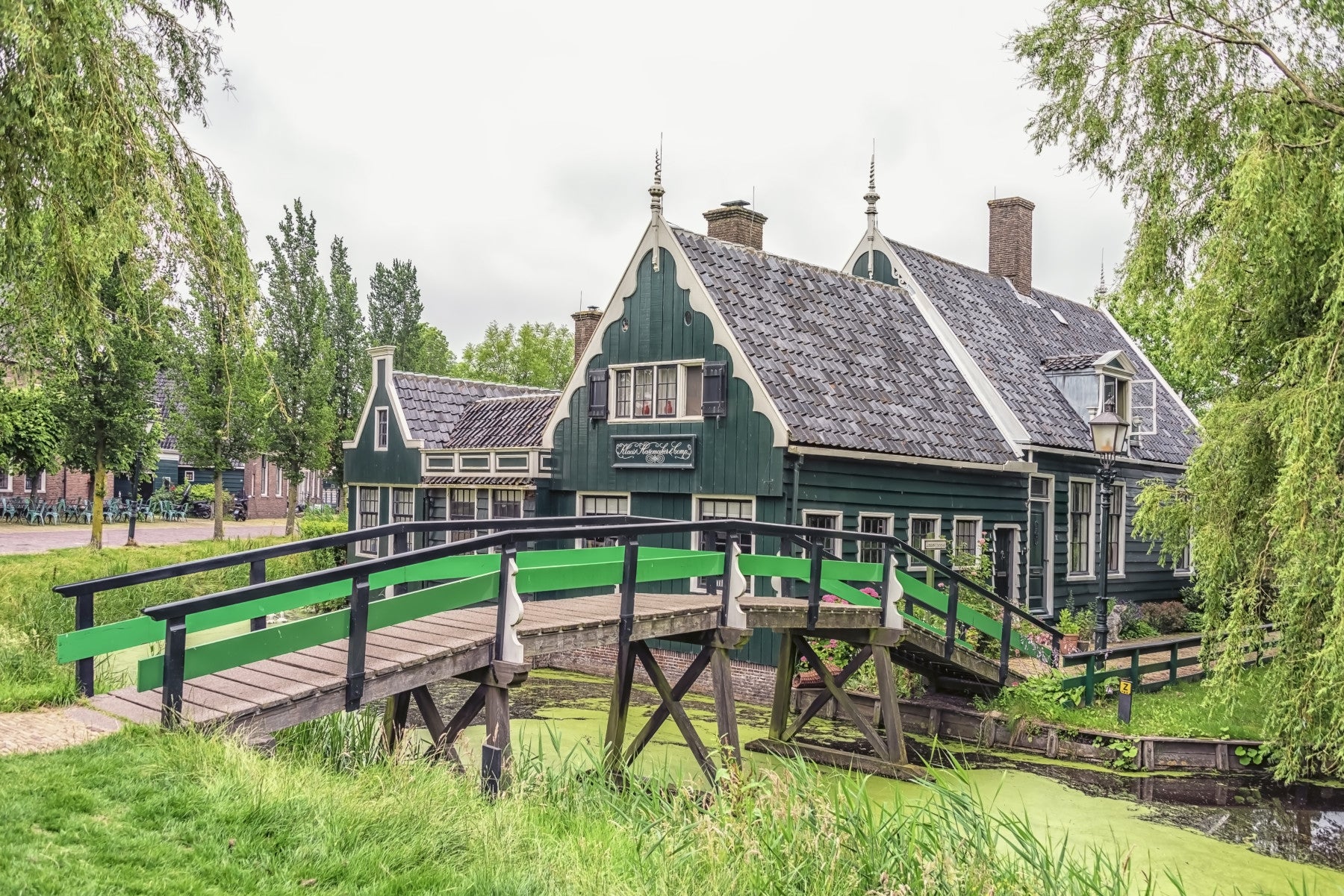 Wide view of Dutch Charms Wall Mural, green wallpaper background with nature details at home