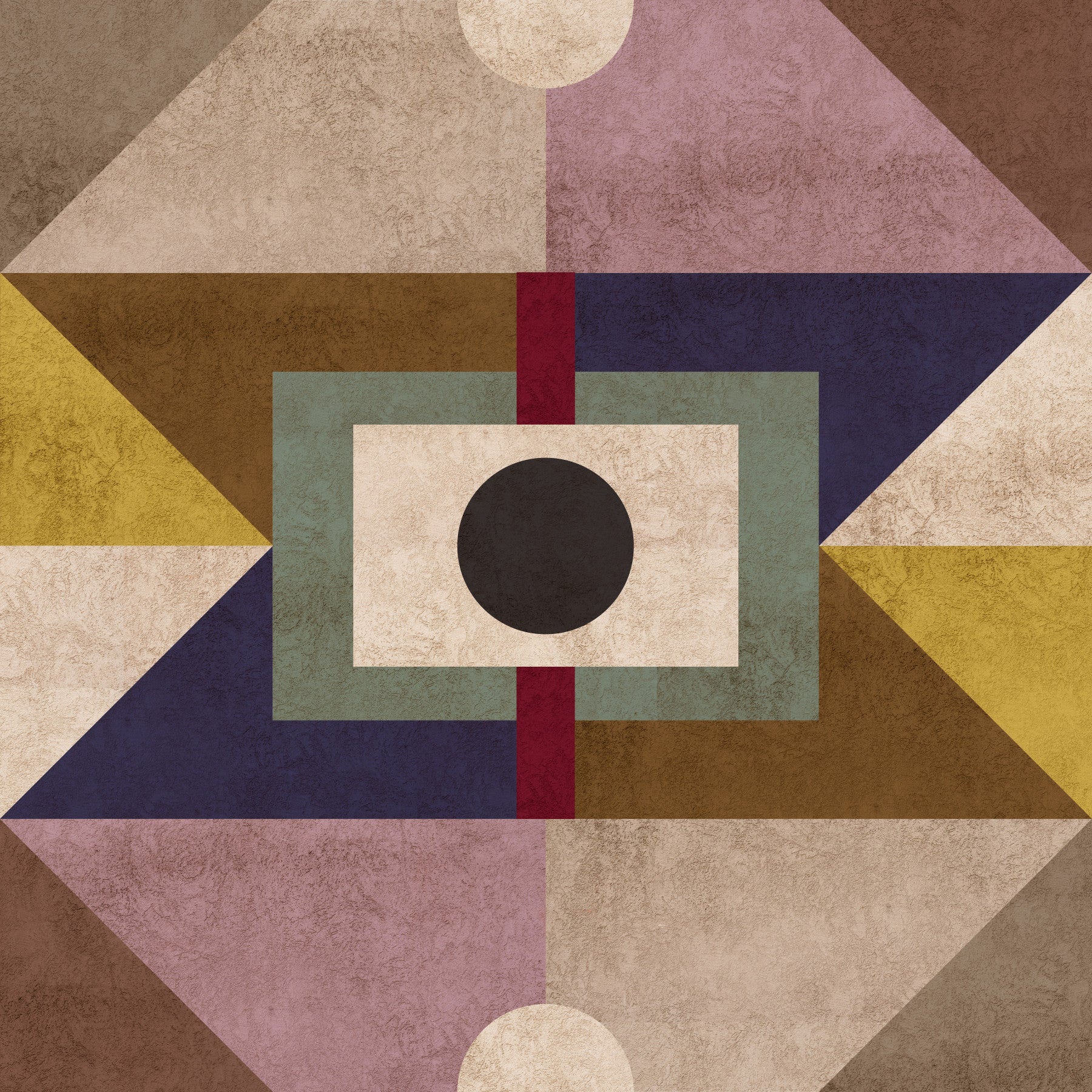 This abstract wallpaper features a striking composition of geometric shapes and muted earth tones. The interplay of varying textures and shades creates a visually captivating design, while maintaining a sense of calm and tranquility. The palette, featuring beige, brown, dusty rose, and subtle greens, provides a serene backdrop for any space. This design balances modern aesthetics with a natural, earthy feel, making it ideal for those seeking a sophisticated and understated look.