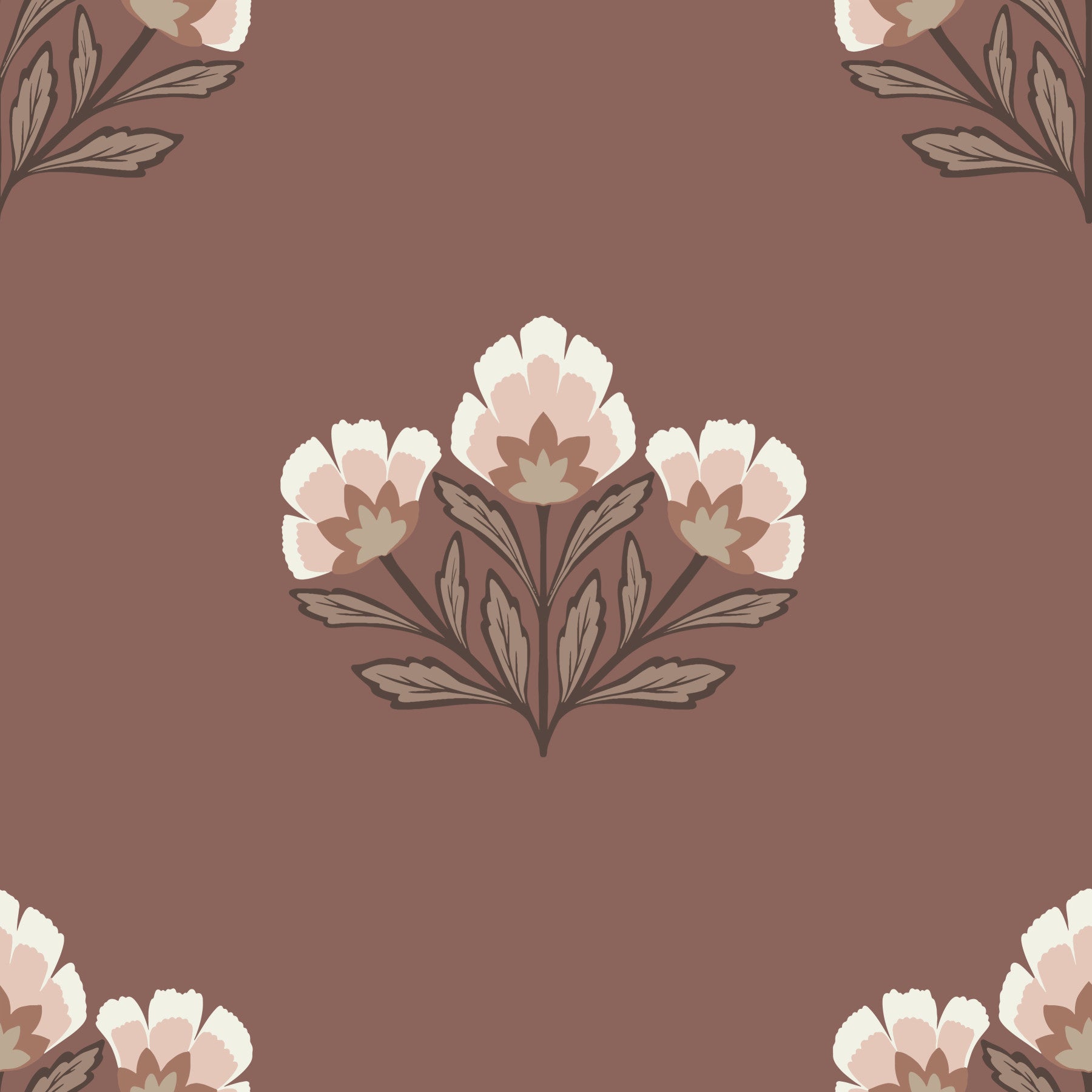 Earthy Bloom wallpaper, traditional pattern, warm brown wall decor.