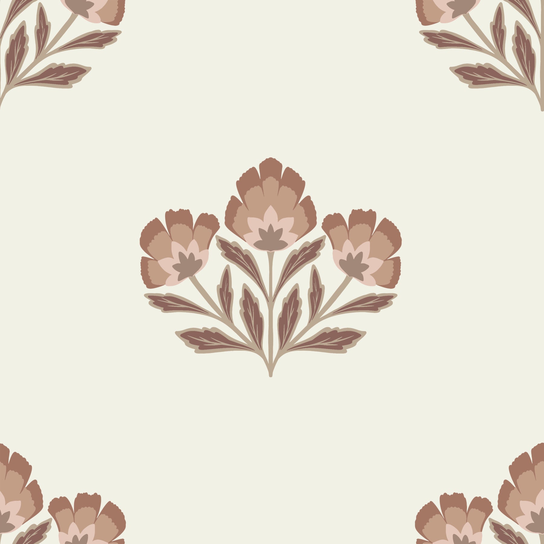 Infuse interiors with natural beauty using this floral-themed wallpaper for walls. Its design showcases stylised blooms in a palette of earthy tones. Brown, beige and a touch of pink work harmoniously to create a soothing mood. The repeating pattern offers subtle visual texture. The wallpaper will improve spaces like bedrooms, studies, or dining rooms, blending with both classic and contemporary furnishings. This floral art generates a sophisticated look for any interior.