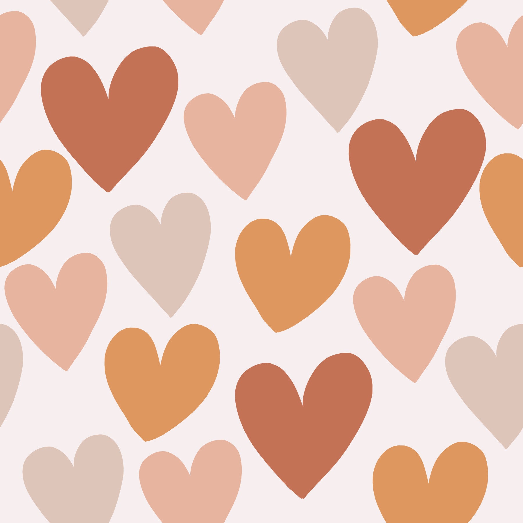 A warm-tone wallpaper with rows of hearts in clay, caramel, and blush shades.