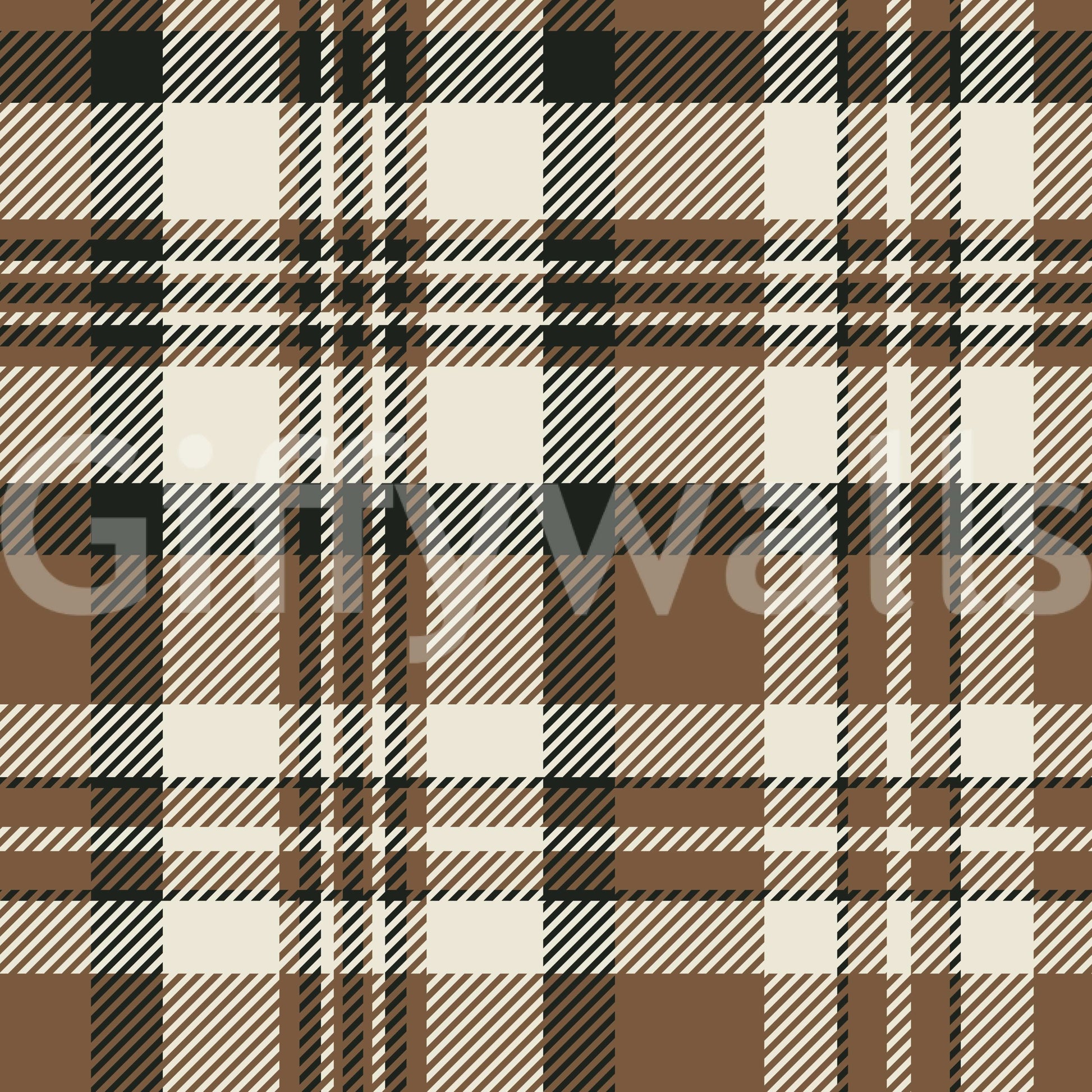 This checks pattern brings a touch of classic comfort to your walls. Diagonal lines in chocolate, beige, and black create a seamless pattern, adding depth and visual interest. It's versatile enough for a living room, study, or bedroom. Use this wallpaper for walls to give your space a cosy, timeless appeal. The warm colour palette complements rustic or modern interiors.