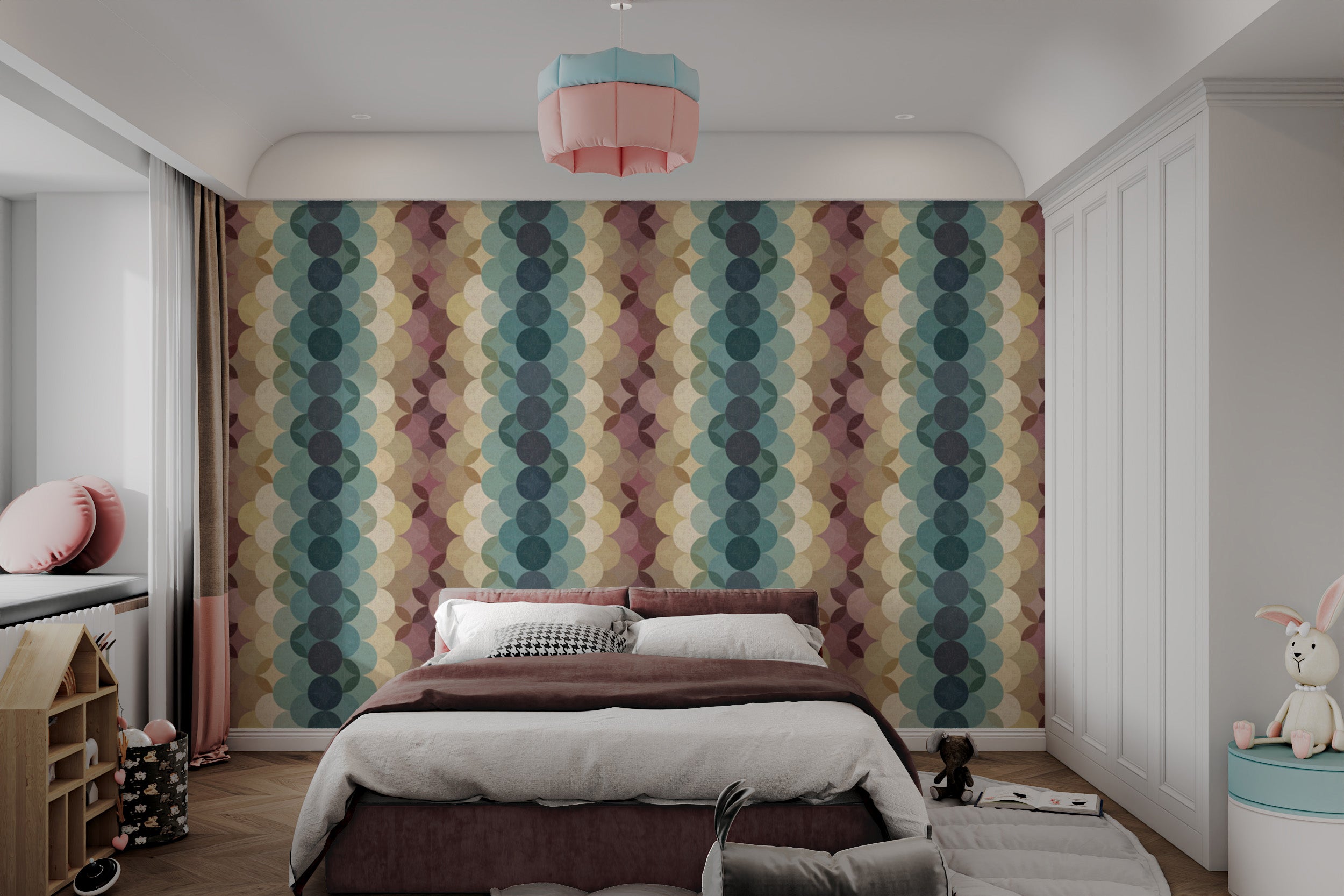 Earthy Retro Dot Cascade peel and stick wallpaper