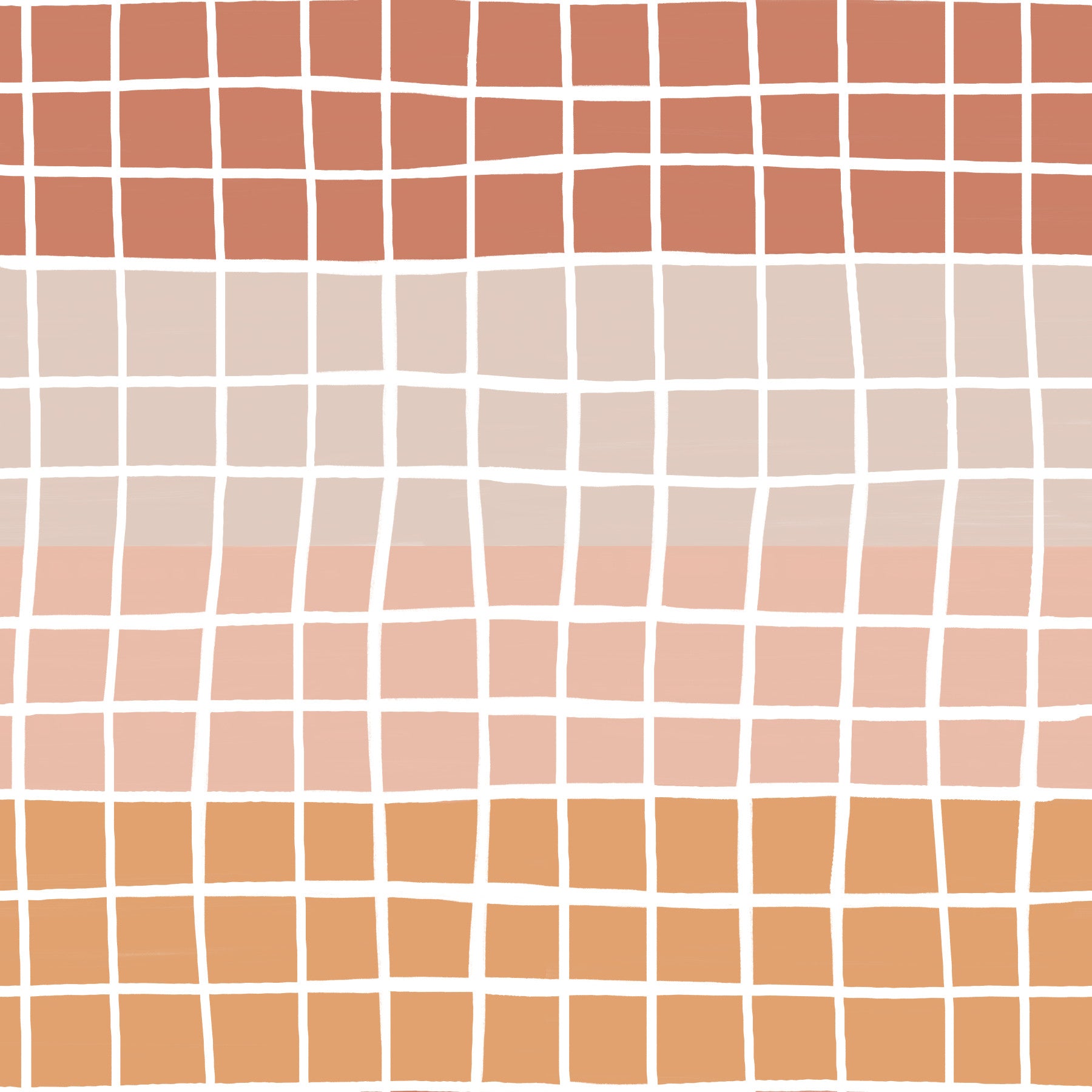 Soothing hand-drawn grid wallpaper blending terracotta, rust, peach, and beige squares naturally.