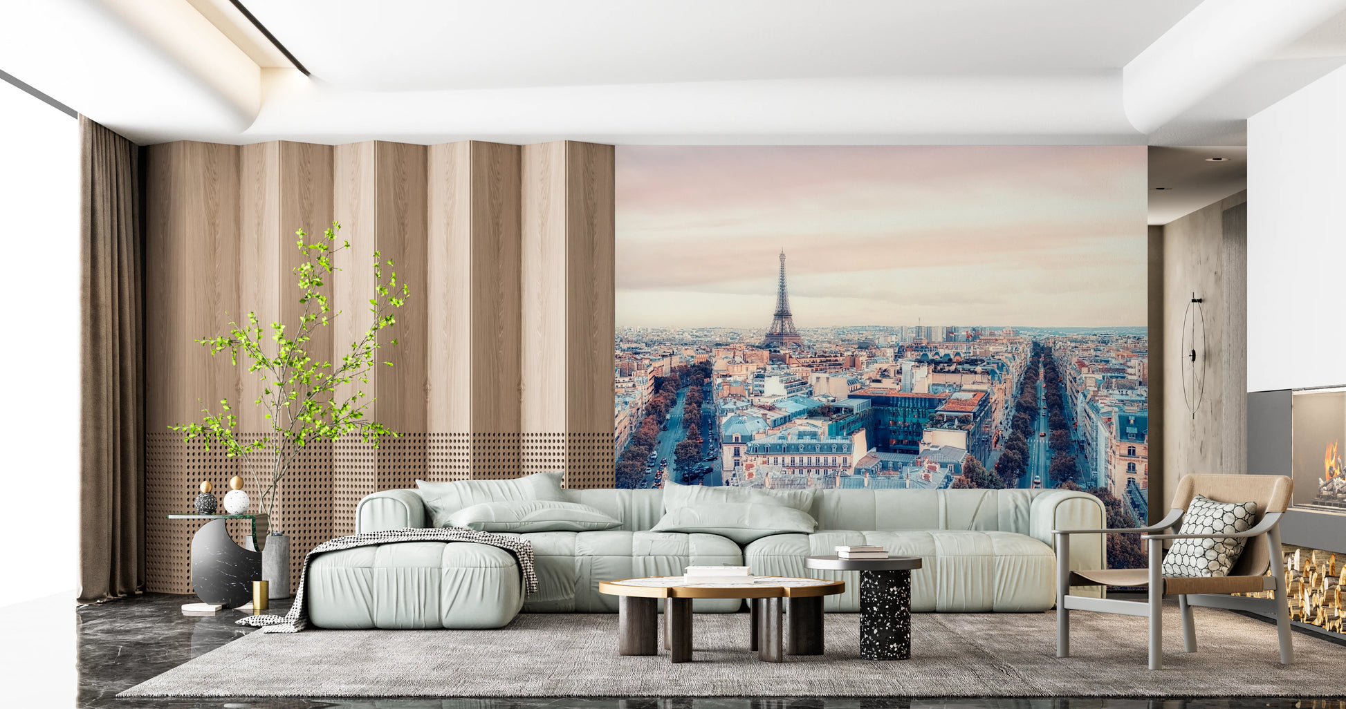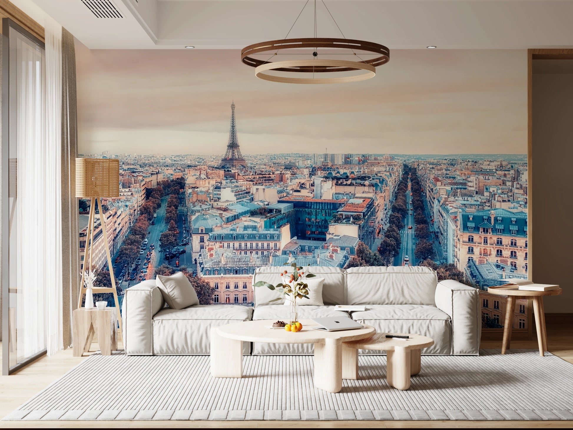 Bring the romance of Paris to your home with this stunning Eiffel Tower view wallpaper for walls. Soft pastel hues blend seamlessly to create a dreamy ambiance. This wallpaper transforms any space into an elegant retreat. Feature the grandeur of Parisian architecture in your living room, bedroom, or entryway. Its calming colour palette complements a variety of décor styles, making it a versatile choice for your home. This wallpaper elevates your space, infusing it with Parisian charm and sophistication. It's perfect for creating a serene and inviting atmosphere.