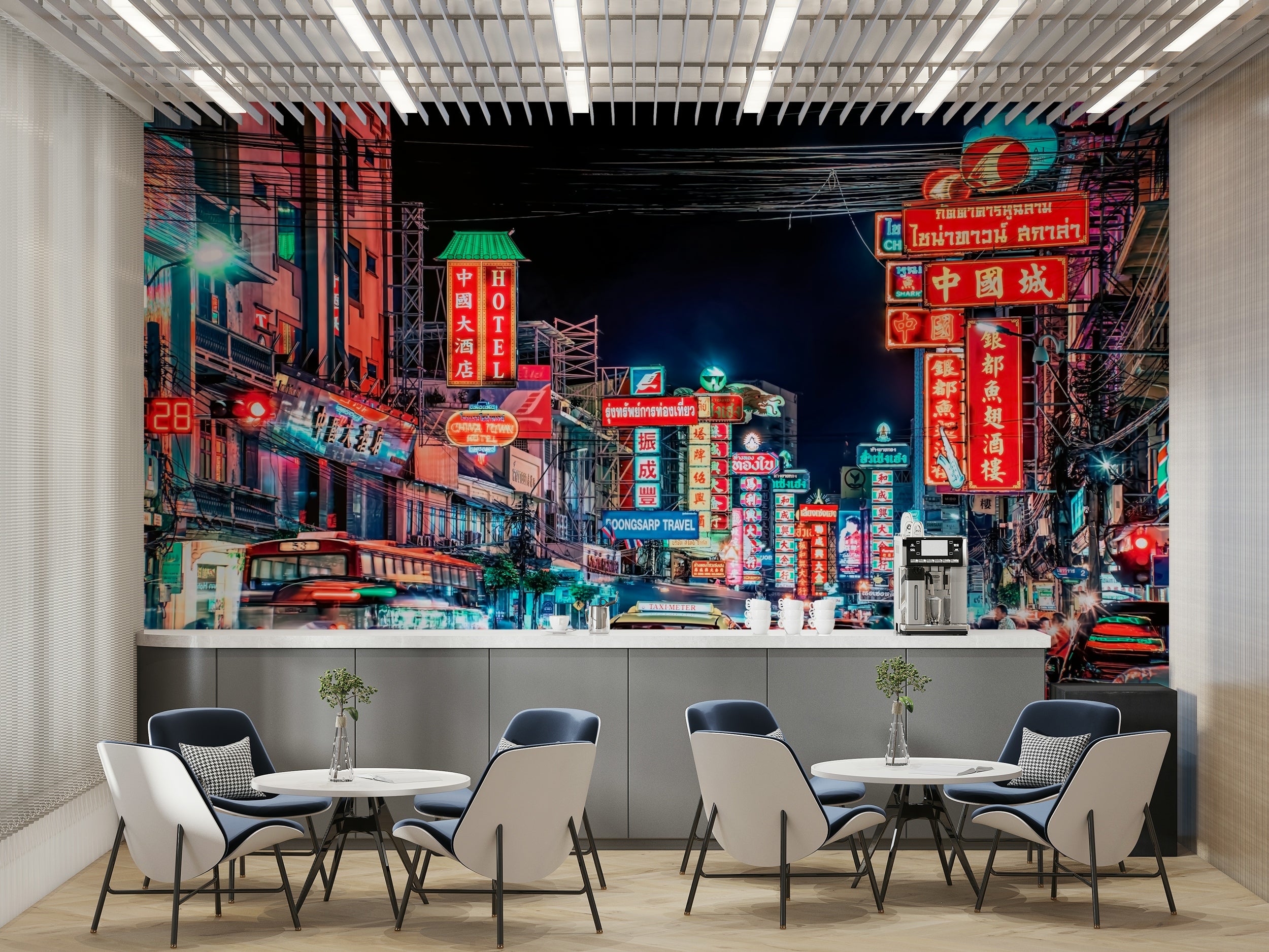 Taxi rides under neon lights in Bangkok