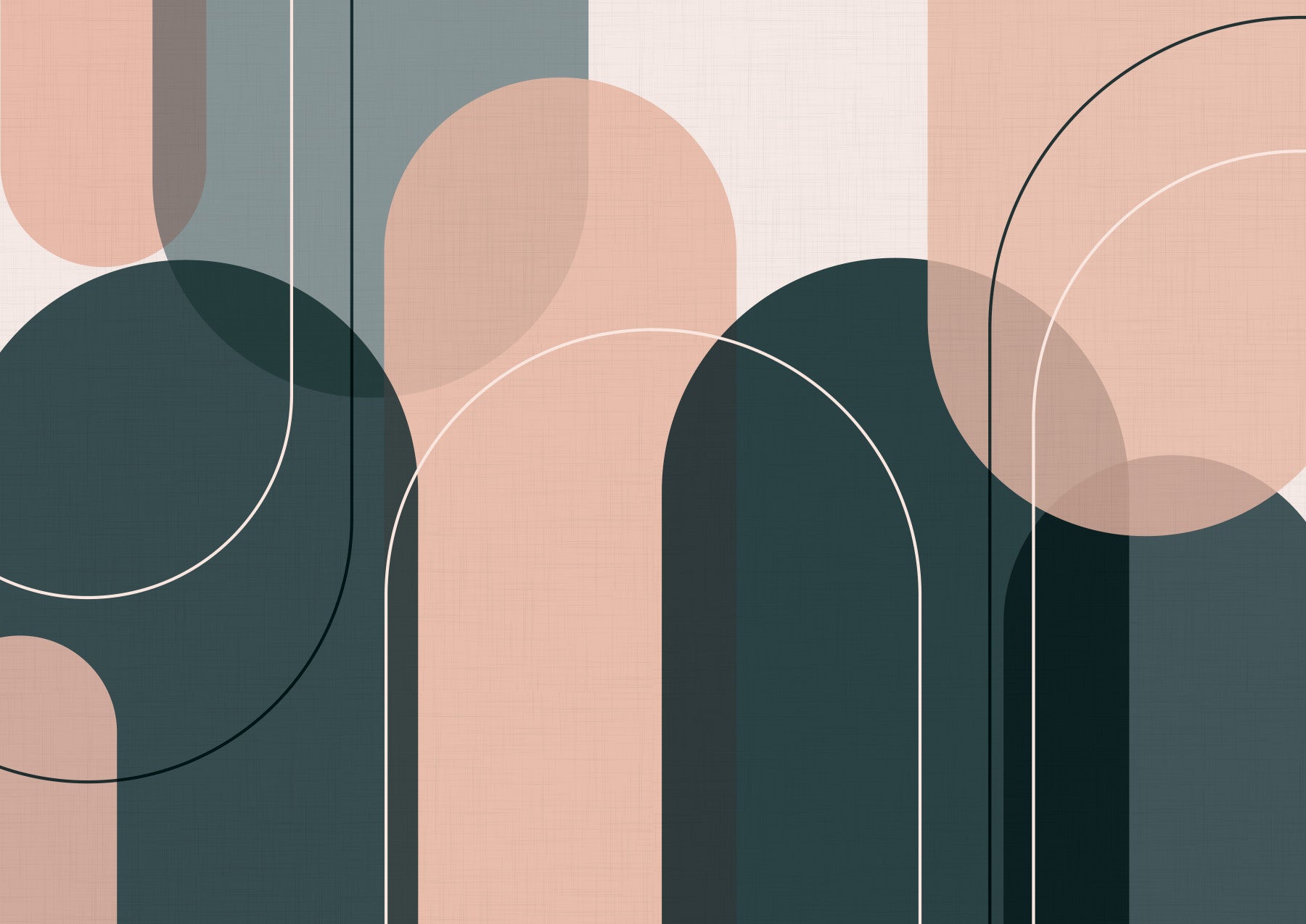 Experience the beauty of understated elegance with this abstract wallpaper. The design features a captivating interplay of soft blush pink and deep teal shapes, overlaid with delicate lines that create a sense of rhythm and movement. The subtle texture adds depth and a touch of organic warmth to the overall minimalist aesthetic. This wallpaper is perfect for creating a serene and stylish atmosphere in any room, from bedrooms to living spaces or even contemporary offices. Its harmonious blend of color and form fosters a sense of calm and sophistication, ideal for those seeking a tranquil yet visually engaging backdrop.