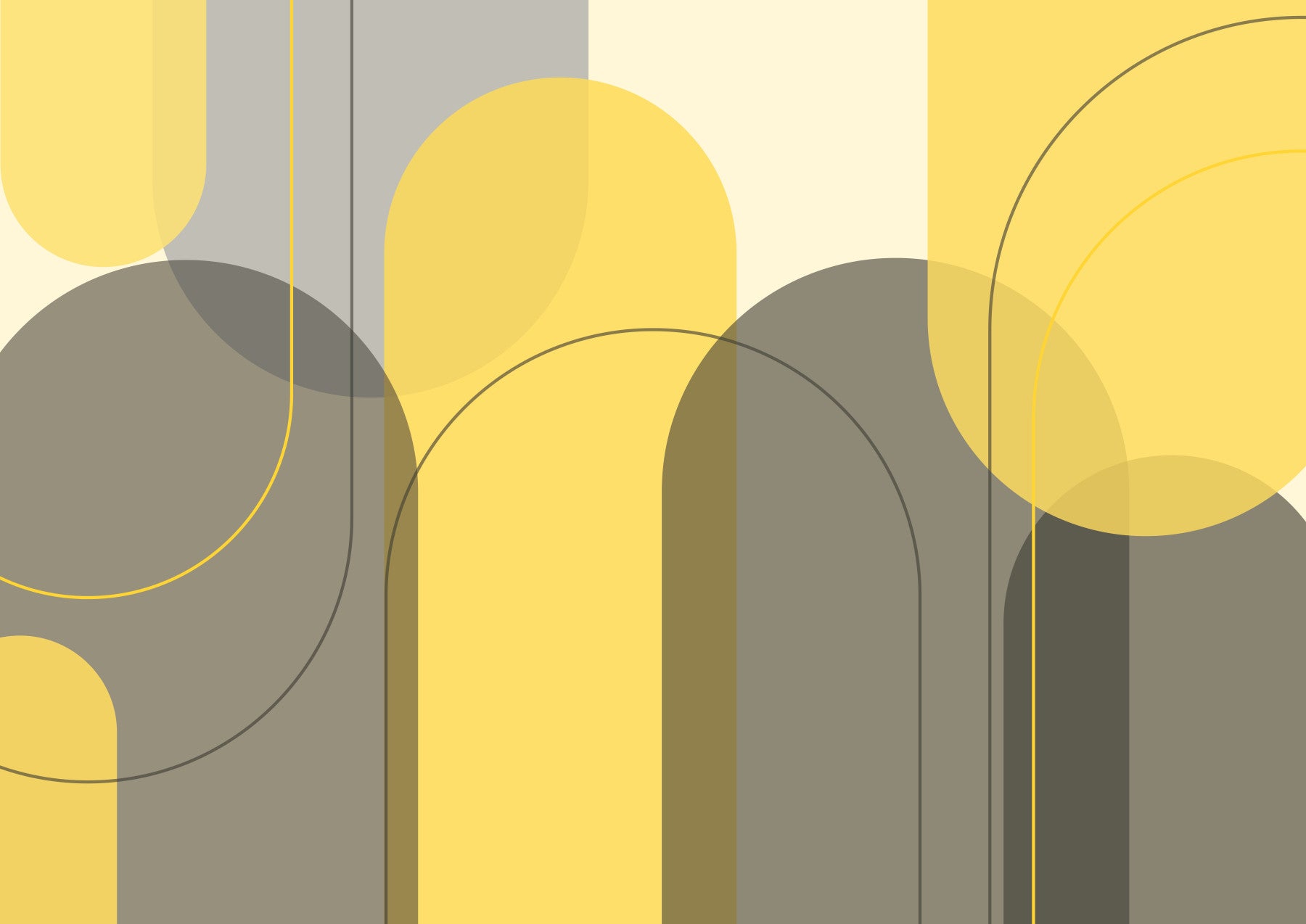 This wallpaper design evokes a sense of mid-century modern elegance with its interplay of soft yellow and muted gray geometric shapes. The overlapping arches create a sense of depth and movement, while the subtle color palette maintains a calm and sophisticated atmosphere. Perfect for adding a touch of retro chic to any room, this design is both stylish and versatile, equally suitable for a living room, bedroom, or office space. The simple yet striking composition makes it a timeless choice, guaranteed to complement a variety of interior design styles.