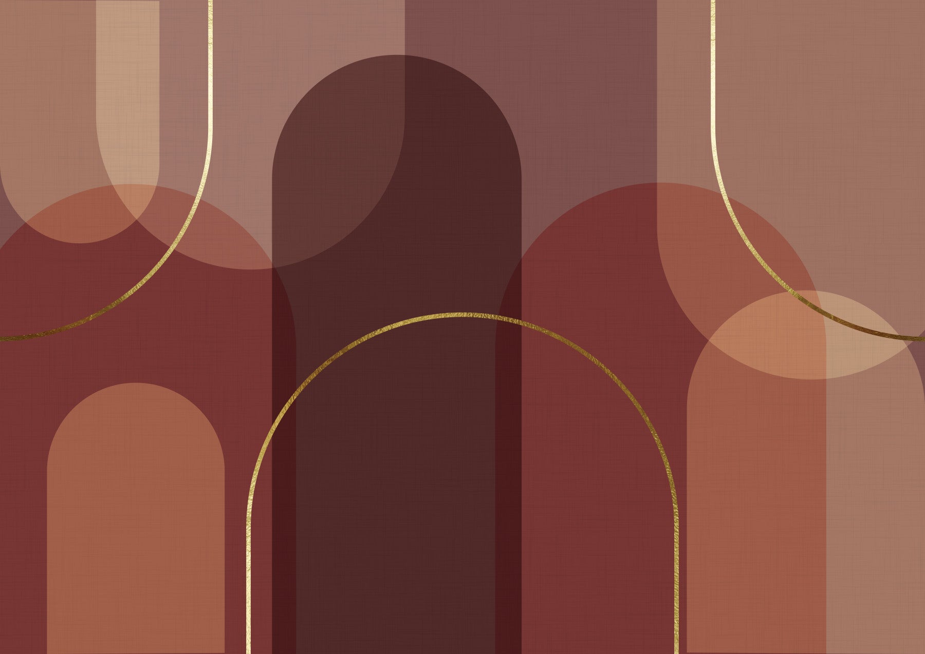 Bring subtle sophistication to your interiors with this abstract design. Earthy shades blend with geometric shapes, accentuated by shimmering gold lines. The color palette ranges from terracotta to muted browns, adding warmth. Use this wallpaper for walls to create a striking feature in your dining room, office, or living room. It will bring a classic yet contemporary feel to your home decor.