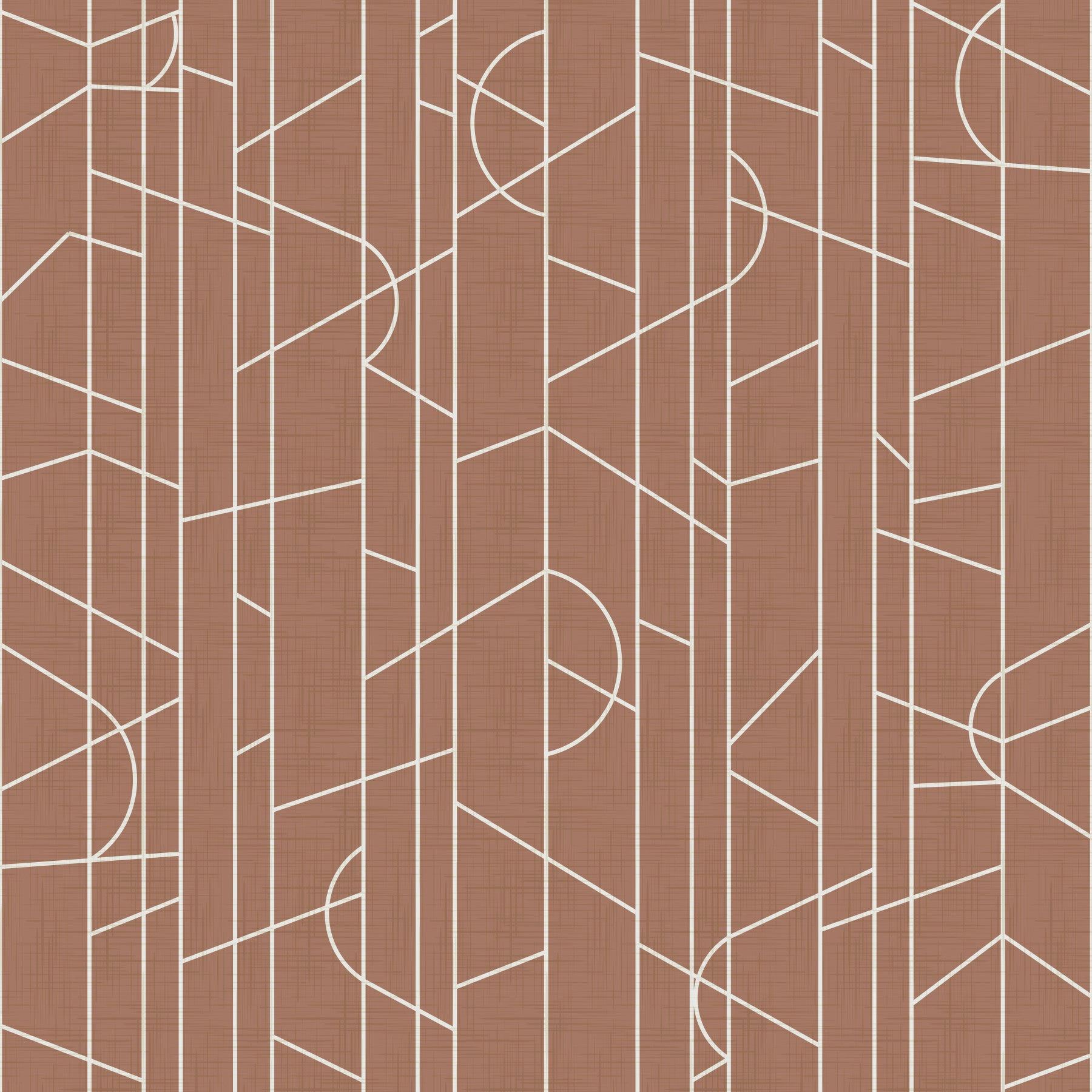 Indulge in the sophisticated charm of "Elegant Lines Decor Mocha Mousse Canvas." This wallpaper showcases a mesmerizing interplay of clean, minimalist lines in off-white, artfully arranged against a rich mocha brown textured backdrop reminiscent of fine linen. The geometric patterns—a blend of triangles, rectangles, and subtle circular elements—create a sense of understated elegance and visual depth. Perfect for adding a touch of modern sophistication to any space, this design offers a calming yet stylish ambiance, ideal for bedrooms, living rooms, or home offices seeking a refined and subtly textured aesthetic. The color palette evokes feelings of warmth and comfort, making it a versatile and visually appealing choice.
