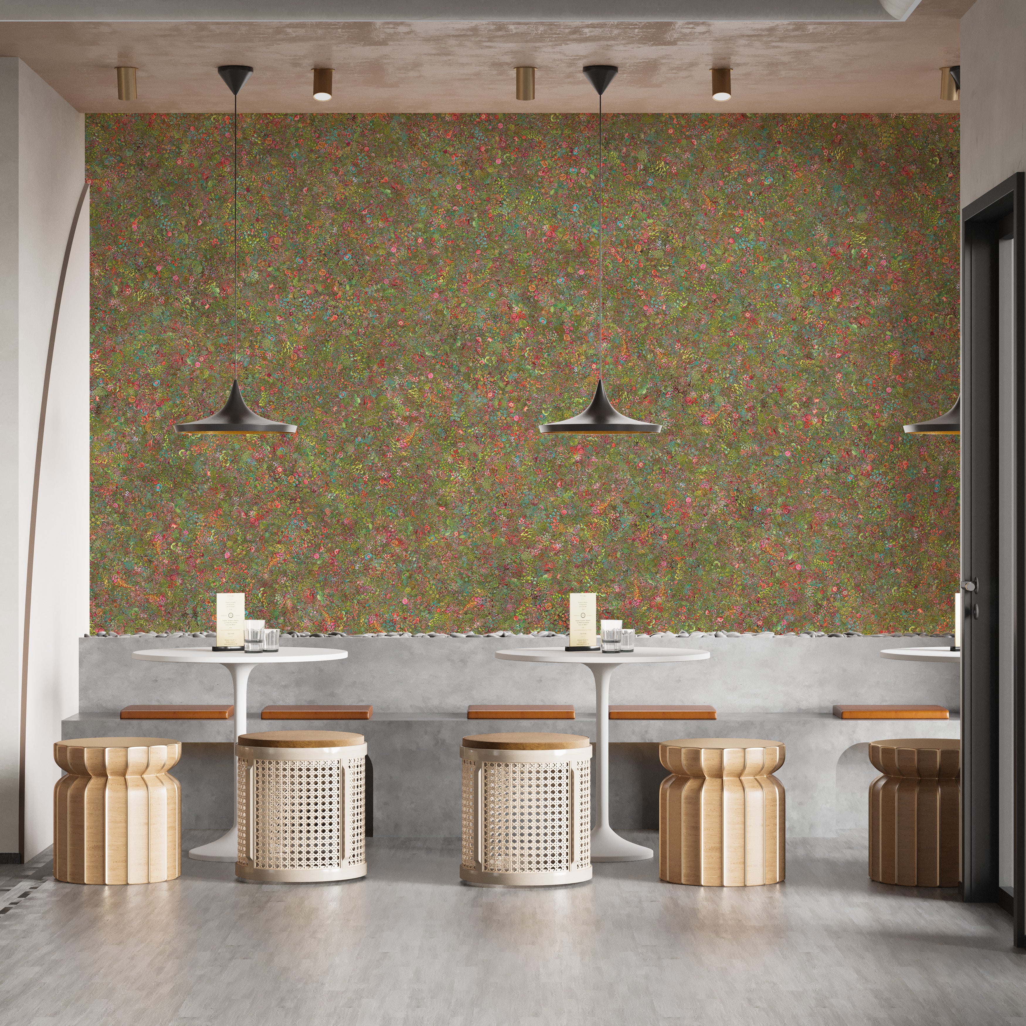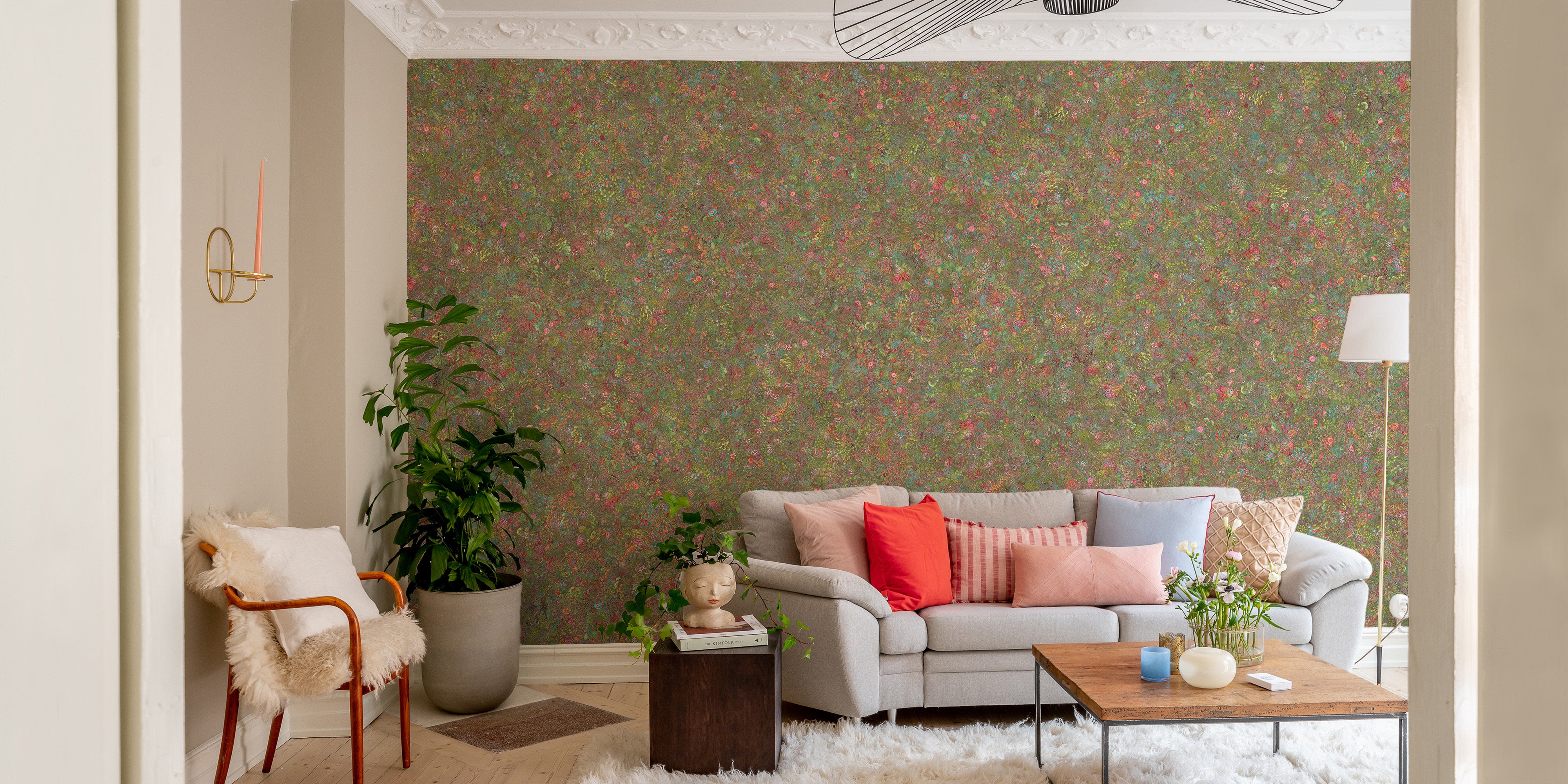 Vibrant floral mural with embroidery vibes