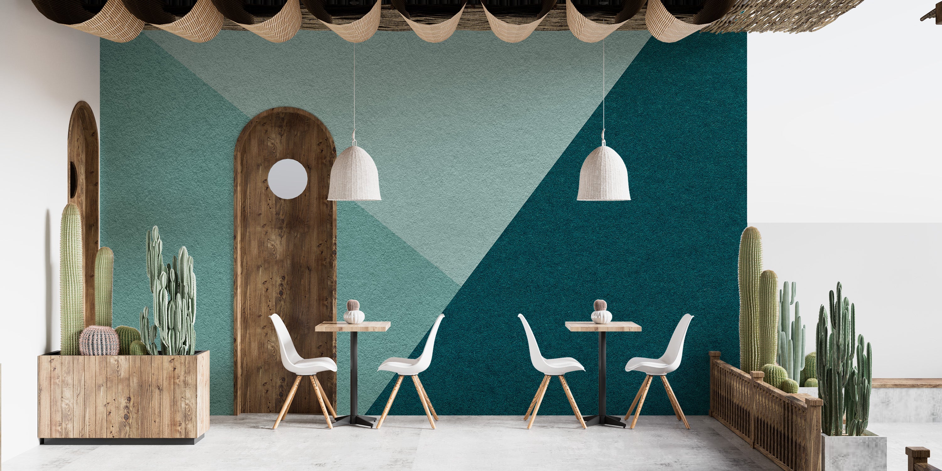 Cyan geometric mural with a modern artistic touch