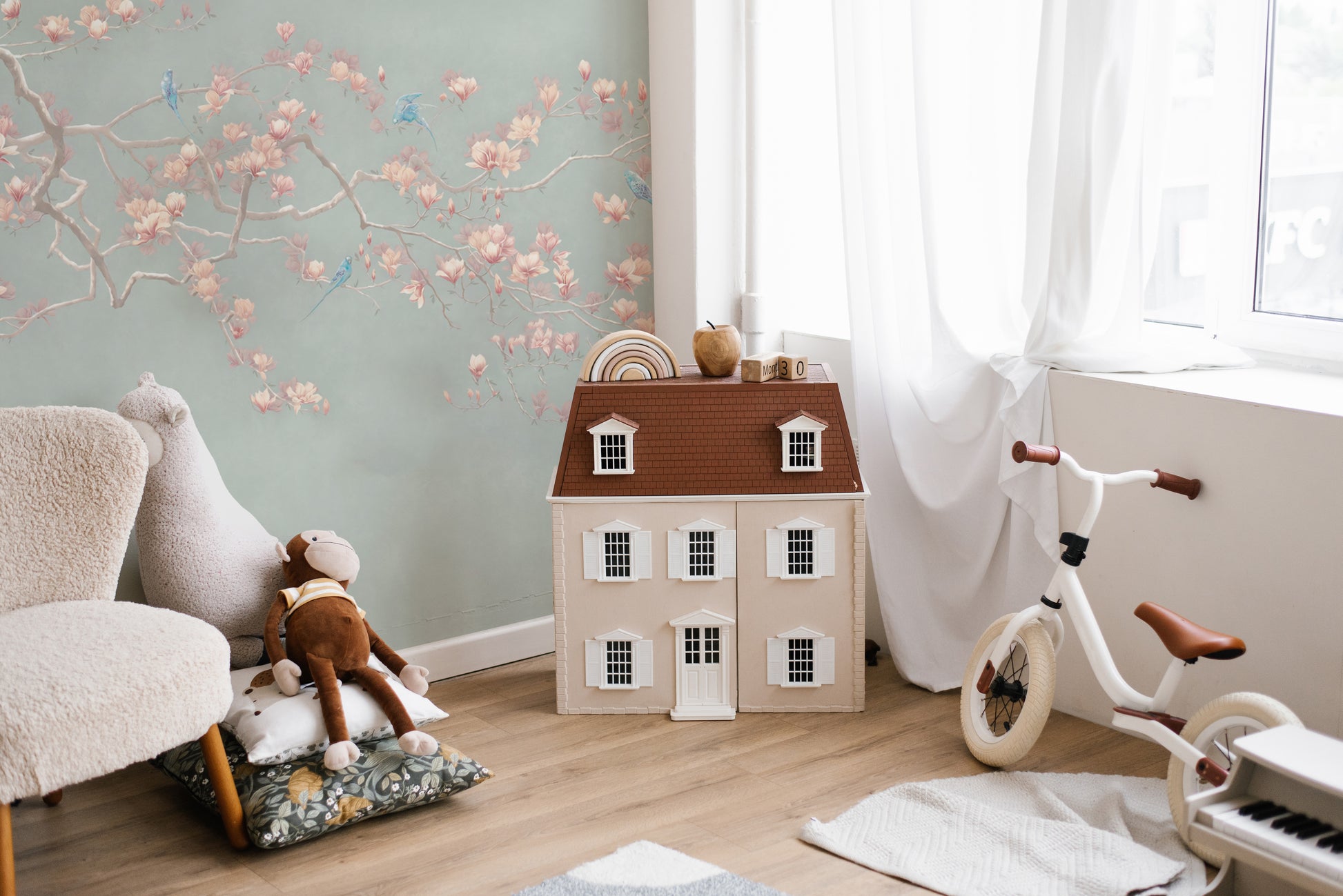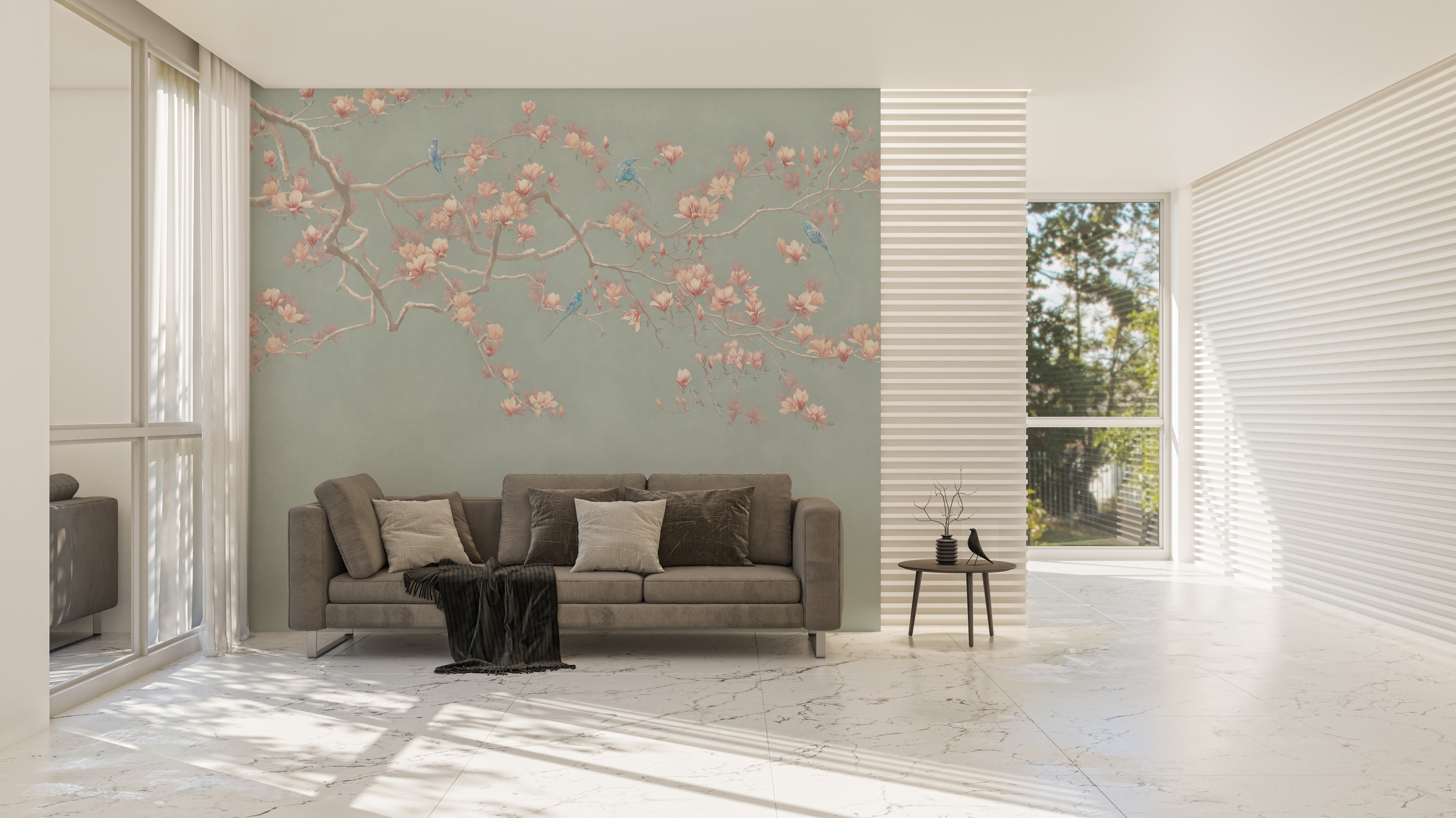 Elevate your space with the enchanting allure of our emerald echoes chinoiserie bird mural wallpaper. Inspired by the timeless elegance of traditional Chinoiserie art, this exquisite bedroom wallpaper showcases a mesmerizing dance of birds amidst lush green foliage. The intricate details and radiant emerald hues create a captivating backdrop, making it the perfect choice for those seeking a blend of classic and contemporary design. Transform your bedroom into a serene oasis with this chinoiserie wallpaper, where every glance reveals a new, delicate detail waiting to be admired.