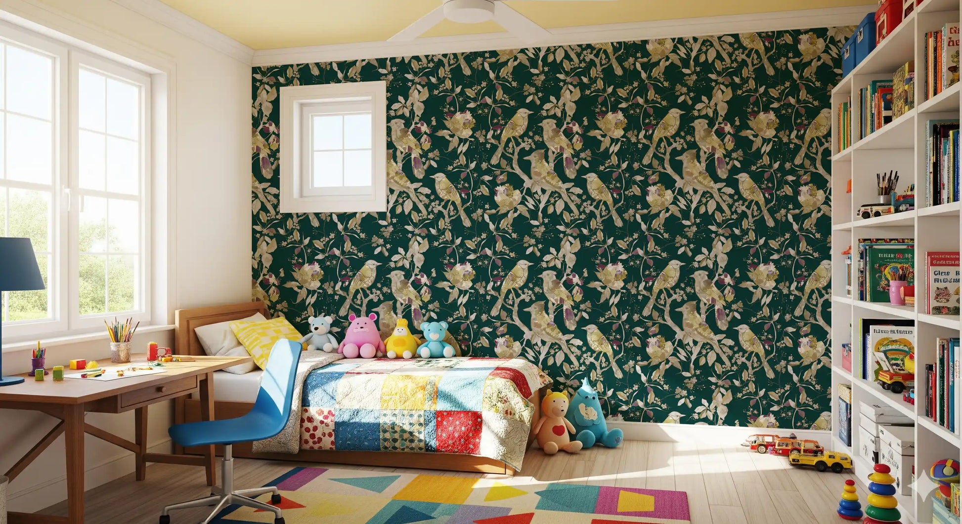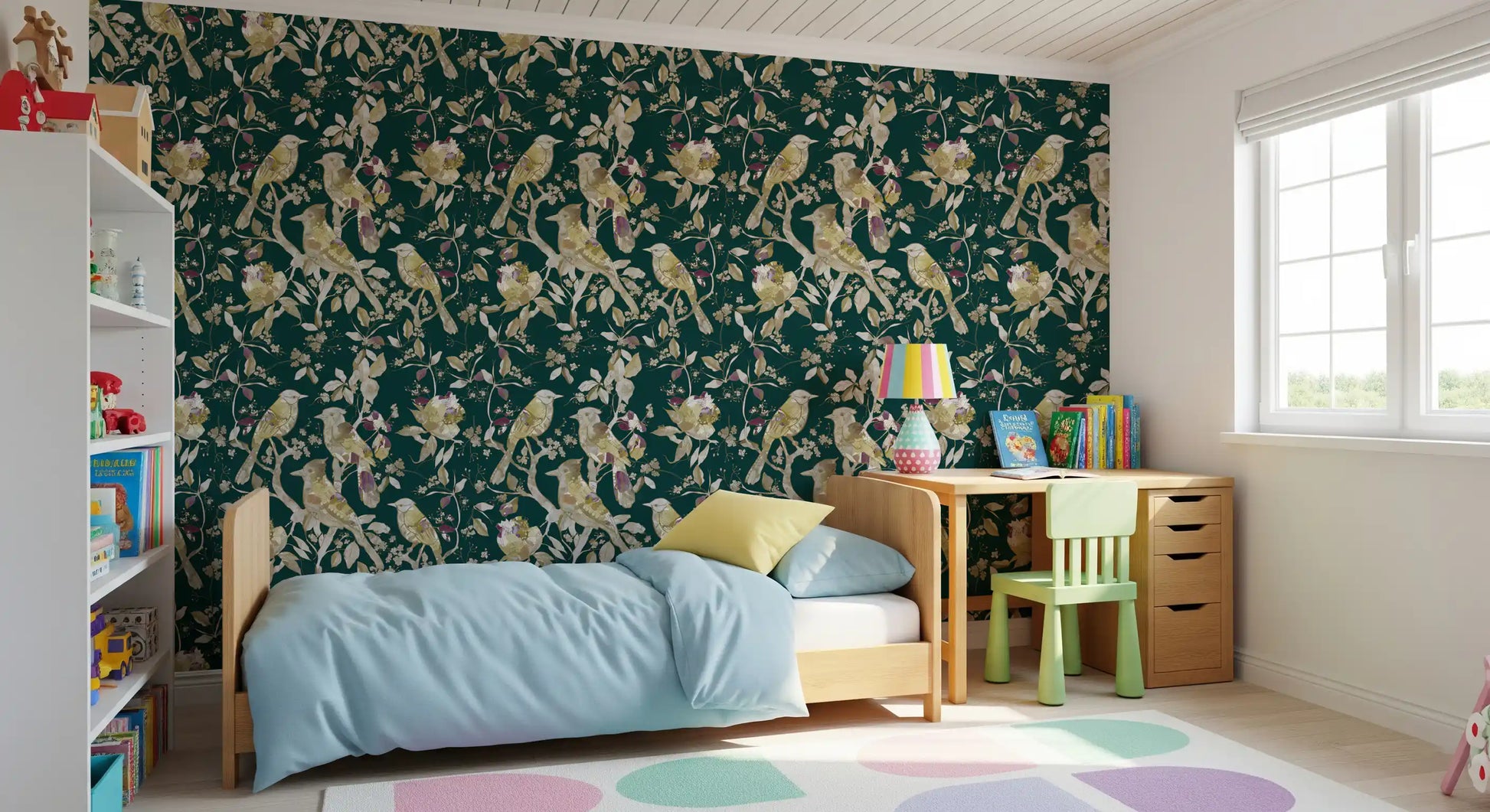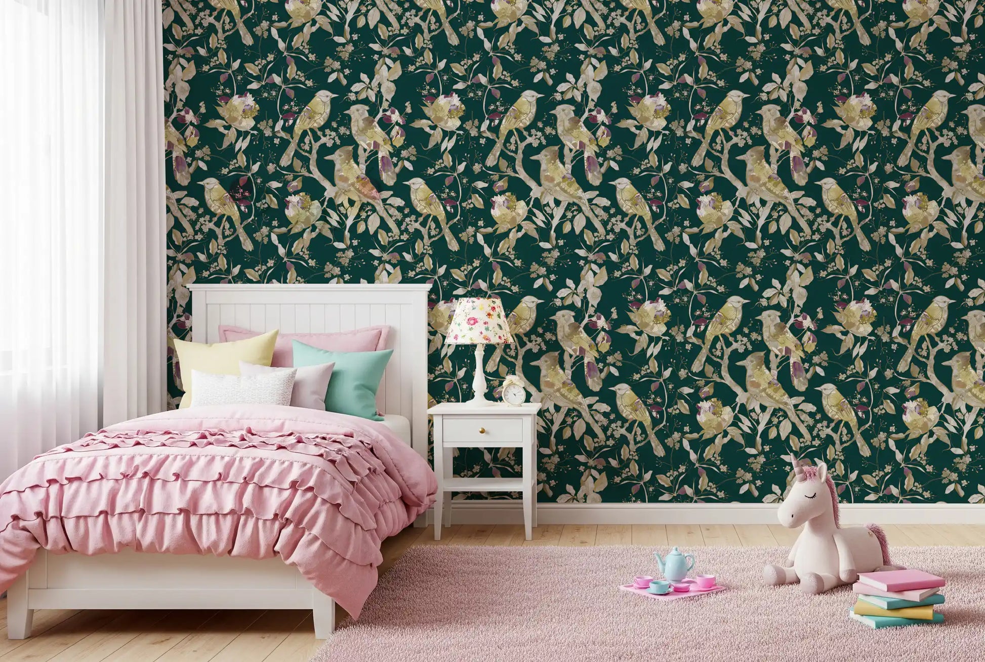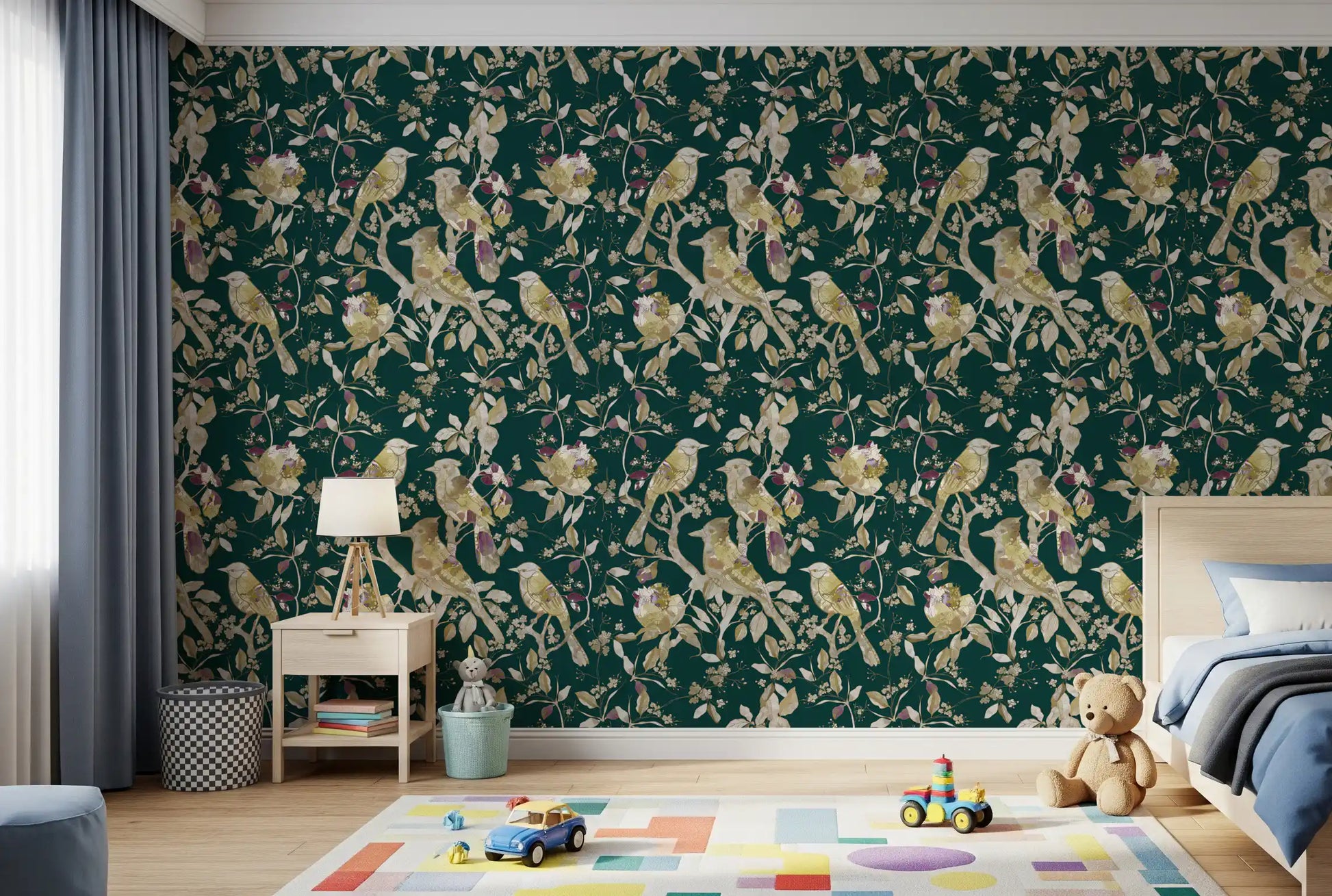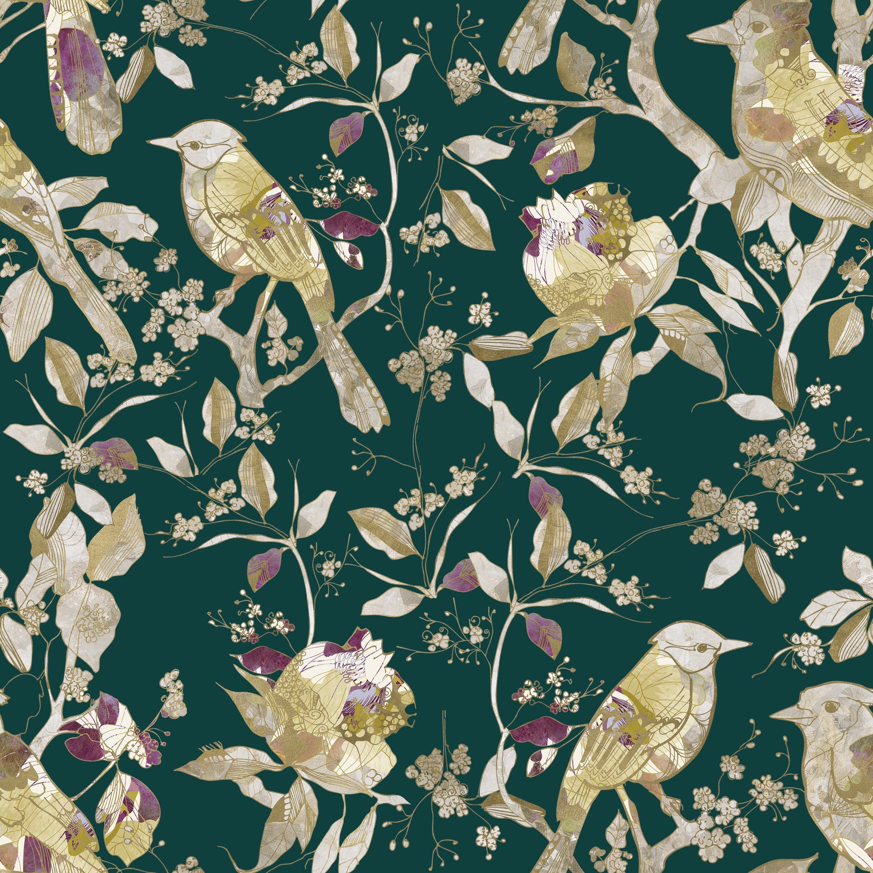 Emerald Garden Birds Wallpaper⁠