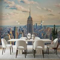 Capture the splendour of New York City with this stunning wallpaper for walls, showcasing the iconic Empire State Building amidst a sprawling cityscape. The soft, warm tones of sunrise paint the sky, adding a touch of serenity to the urban landscape. This design brings a sense of grandeur and sophistication, making it ideal for a living room, office, or study. The detailed architecture and subtle colours harmonise with modern or classic interiors, creating a captivating focal point that sparks conversation and adds depth to any space.