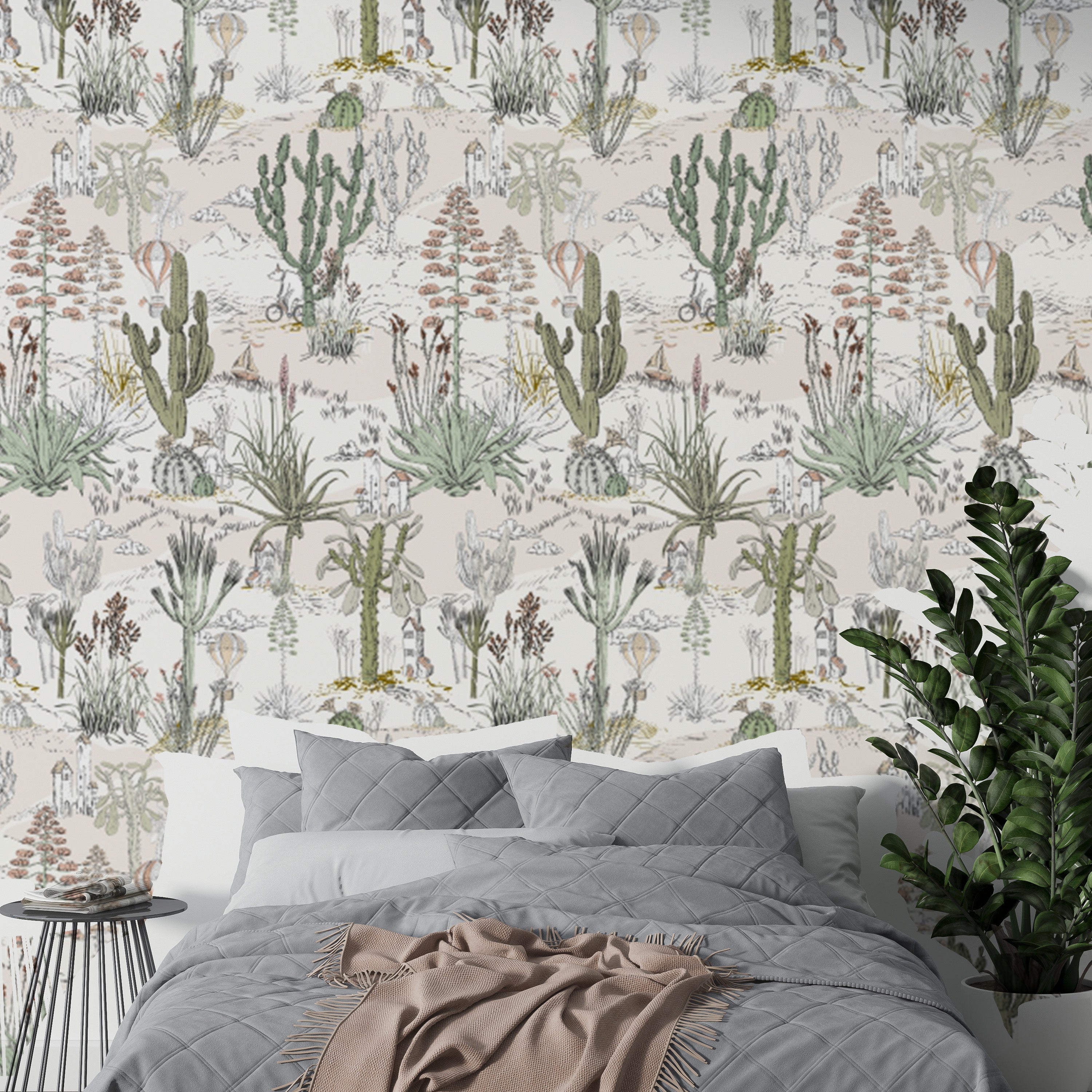 Cacti dreamland wallpaper adds whimsy to cozy desert-inspired rooms