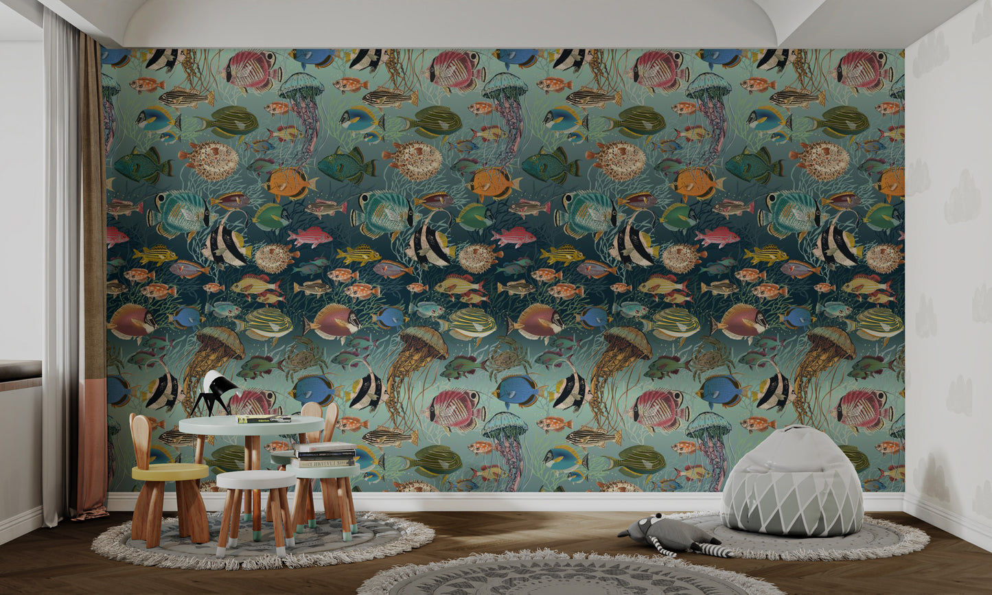 Dynamic Marine Mosaic Wallpaper for Interiors