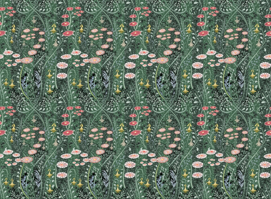 Discover a world where lush foliage and delicate florals meet in a harmonious blend of natural beauty. This green wallpaper encapsulates the essence of a serene meadow, bringing the outdoors in with its rich, verdant tones and a symphony of blooming flowers. Each roll is a canvas that captures the whimsical dance of wildflowers, beckoning you to lose yourself in its intricate design. Perfect for those who wish to infuse their homes with the vibrancy of nature's palette, this wallpaper is a tribute to the splendor of the earth’s botanical wonders.