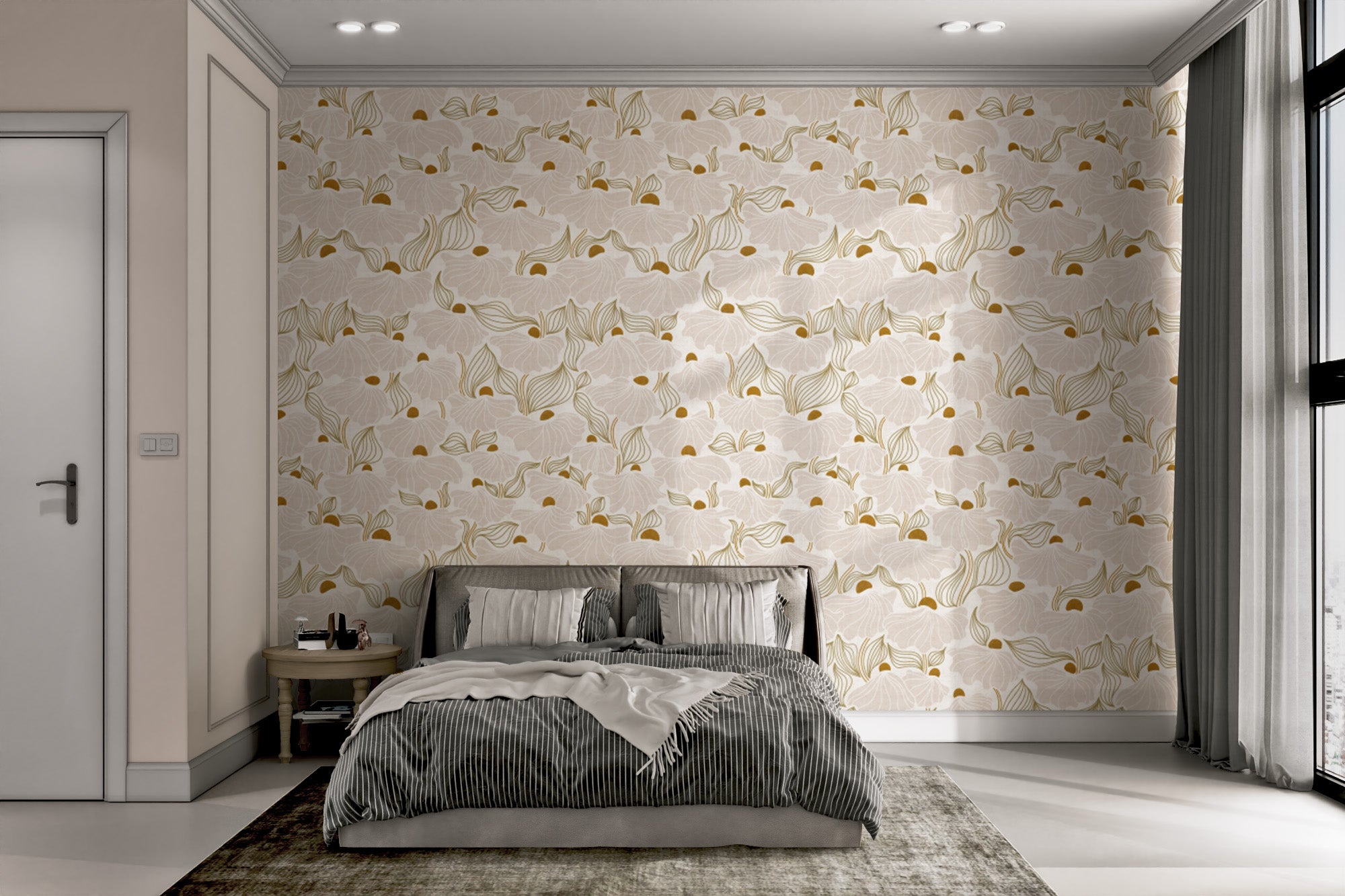 The Ethereal Antique Meadow Dance Wallpaper brings a timeless charm to any dining area, setting a stage for memorable meals and engaging conversations. Imagine the delicate swirls of meadow flowers and leaves, brushed with hints of gold, adorning your walls, creating a seamless blend of nature's beauty and vintage grace. This design whispers stories of yesteryear while complementing the modernity of a bustling dining room, becoming not just a backdrop but a central character in your home's narrative. It's a pattern that captures the dance of the breeze through an ageless meadow, right there where you gather with loved ones.