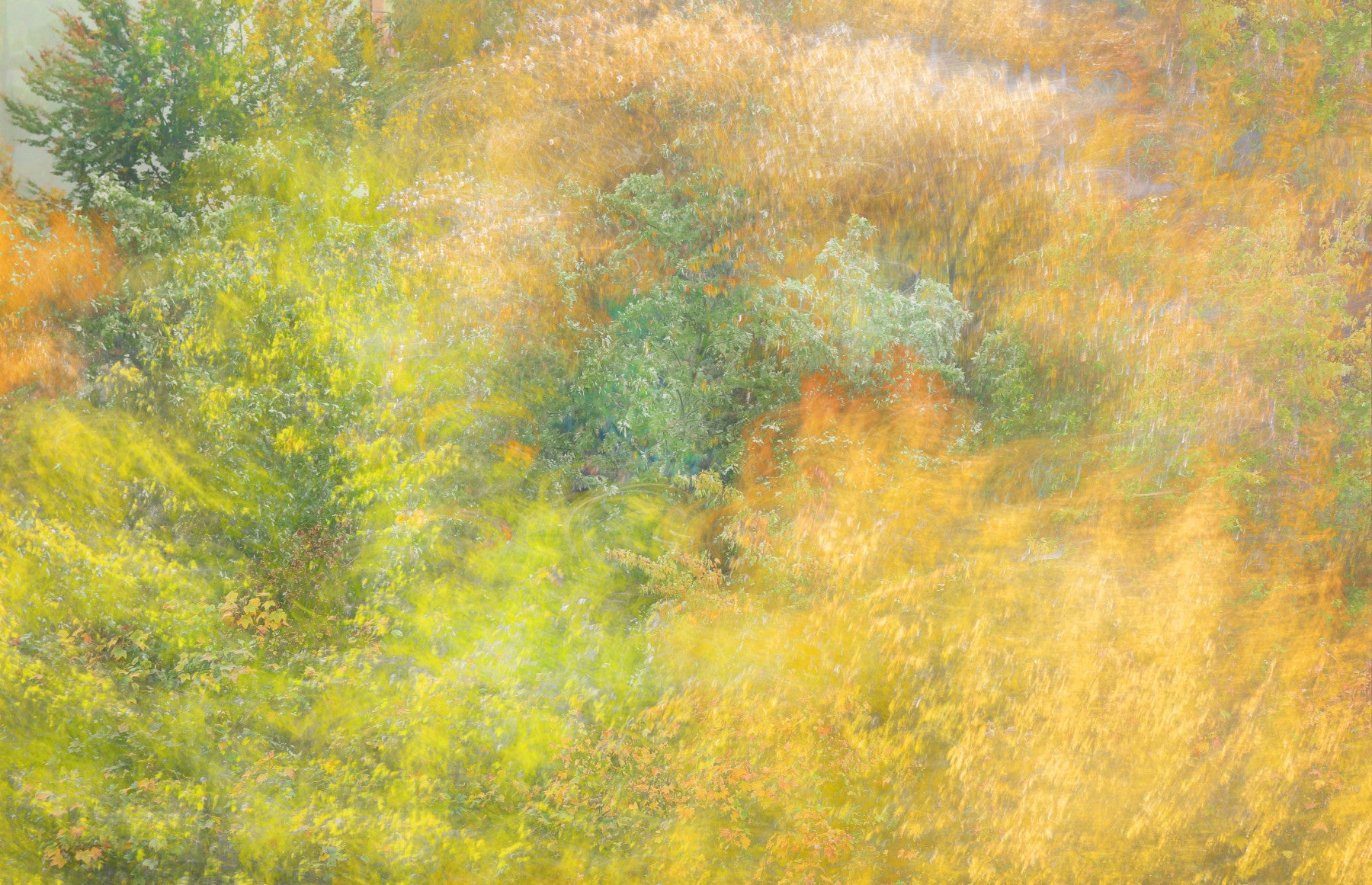 This abstract nature photography piece presents a mesmerizing blend of autumn hues, showcasing the vibrant interplay of greens, yellows, and oranges. The soft focus and layered textures convey a sense of movement, inviting viewers to explore the depths of the forest. Perfect for adding a touch of warmth and tranquility to your living space, this piece embodies the beauty of nature's transition. Elevate your home decor with this unique representation of the fall season.