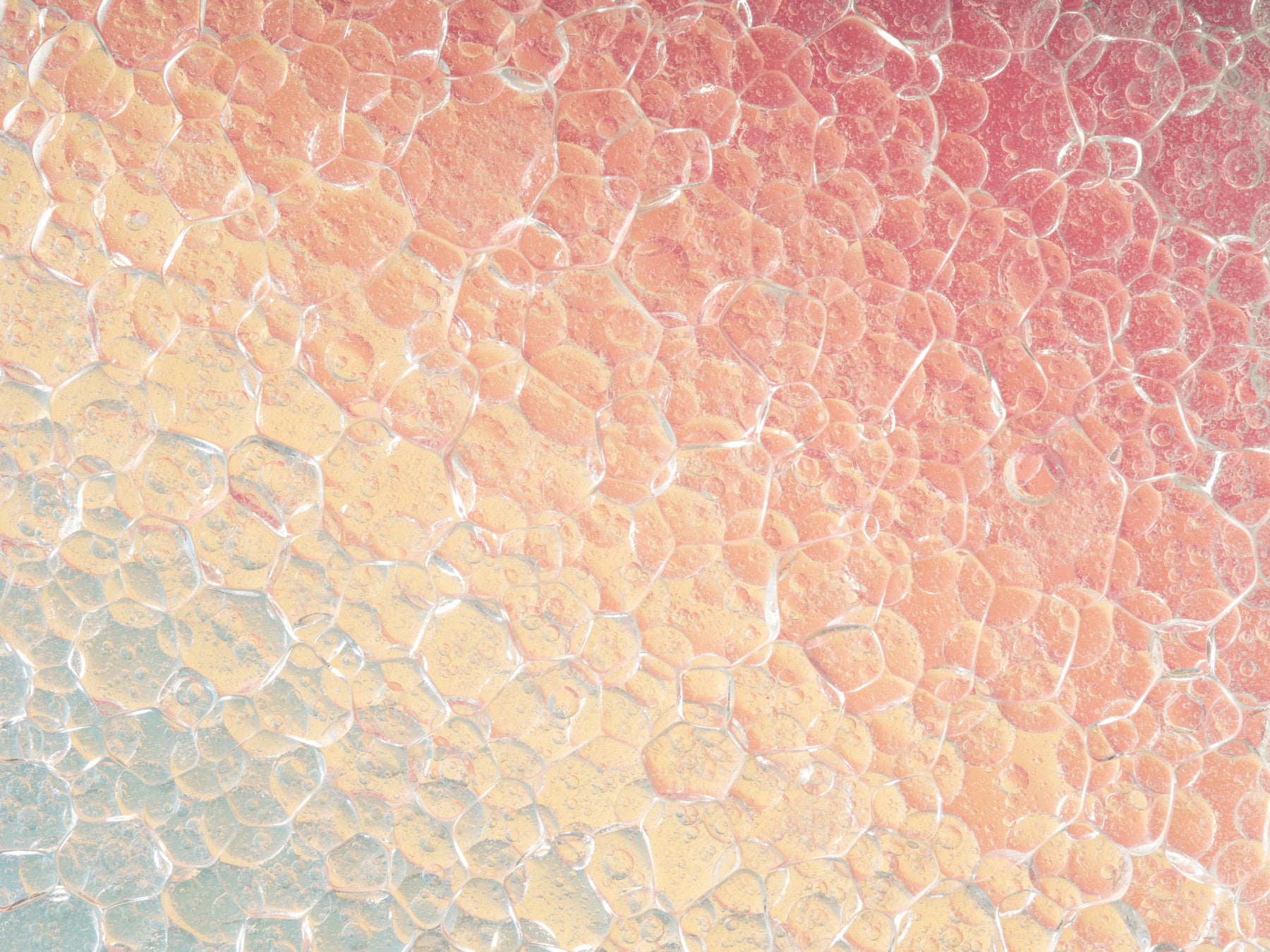 Multicolored bubble surface. Introduce understated beauty with this cellular design. Notice the gentle shift from a coral hue to a soft, muted blue. This wallpaper for walls adds a touch of modern flair in bathrooms, bedrooms or living rooms. The textured design creates visual depth, enhancing minimalist rooms with a clean and fresh feel. Enjoy this subtle elegance that invites calm and serenity.