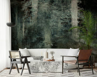 Transform your space with this moody forest-inspired wallpaper for walls. Its intriguing brushstrokes and complex textures evoke a dreamlike atmosphere. Various shades of blue, grey, and brown blend to create depth and mystery. The subtle details and abstract design make this an interesting focal point in any room, especially living rooms, bedrooms, or hallways. It complements modern, industrial, or even rustic interiors by adding a touch of artistic sophistication.