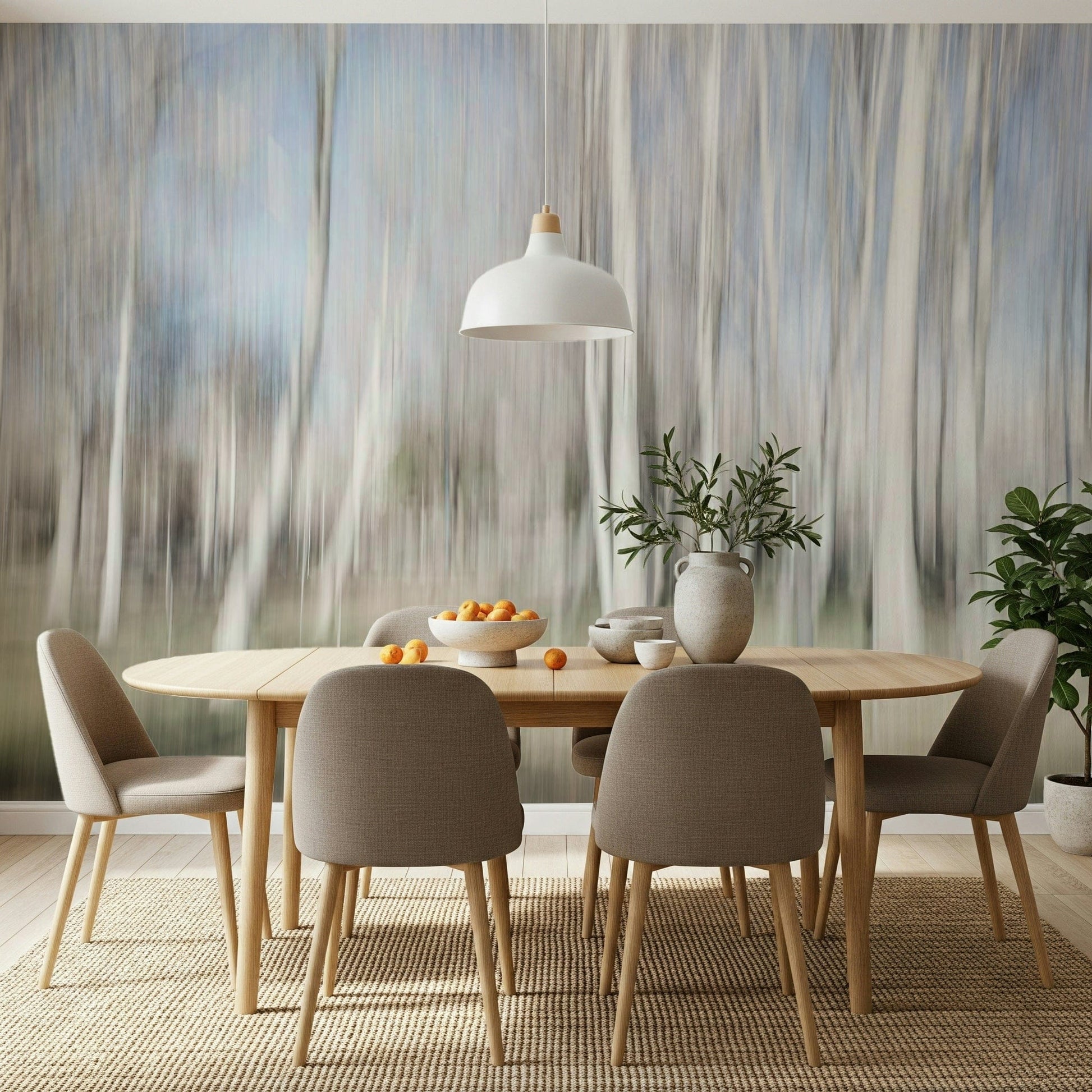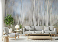 Experience the magic of a forest bathed in gentle light. This abstract design features blurred trees and a subtle colour palette, creating an ethereal and dreamy mood. The light white and grey tones make this wallpaper for walls an ideal choice for bedrooms and living rooms, promoting tranquility and calmness. It nicely complements minimalist interiors, offering a sense of openness and peace. It also works in nurseries as a neutral and relaxing image.