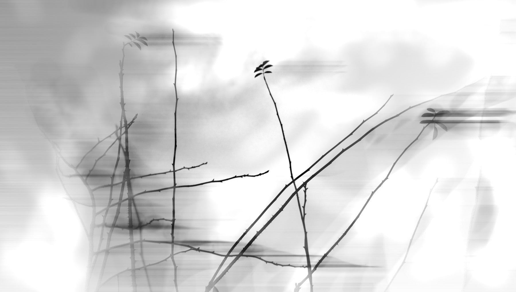 Ethereal Monochrome Art Print of Delicate Branches Wall Mural
