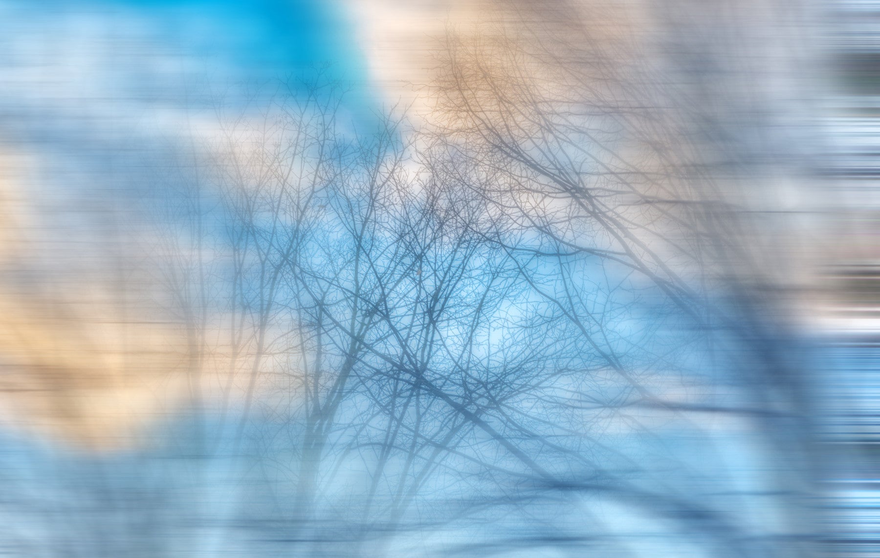 Ethereal Sky Abstract Art Print - Soft Blurred Branches in Tranquil Blue Wall Mural