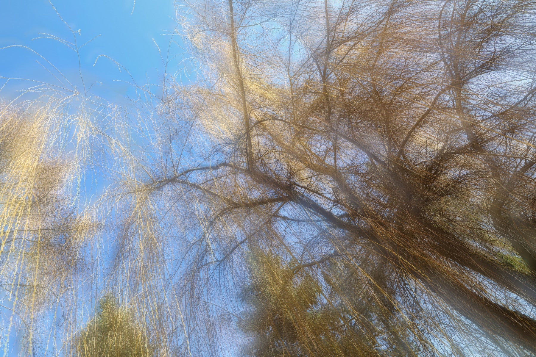 This striking piece presents a unique perspective of a tree canopy, where delicate branches intertwine against a serene blue sky. The soft focus and gentle light create an ethereal quality, inviting viewers to reflect on the beauty of nature. Perfect for adding a touch of tranquility to your living space or office, this piece embodies the essence of nature's elegance. Elevate your decor with this captivating representation of the outdoors.