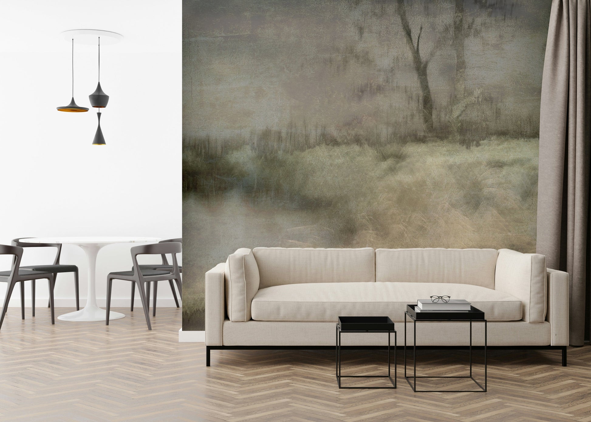 Immerse rooms in serenity with this abstract landscape design. Soft colours merge into a hazy scene, invoking a peaceful mood. Perfect for bedrooms or living areas, the gentle brushstrokes and earthy tones create a calming backdrop. The muted palette ensures it won't overwhelm, offering a subtle elegance. Apply this wallpaper for walls to instantly boost the atmosphere of your space. It introduces a touch of nature without being too literal, suiting modern and traditional homes alike.