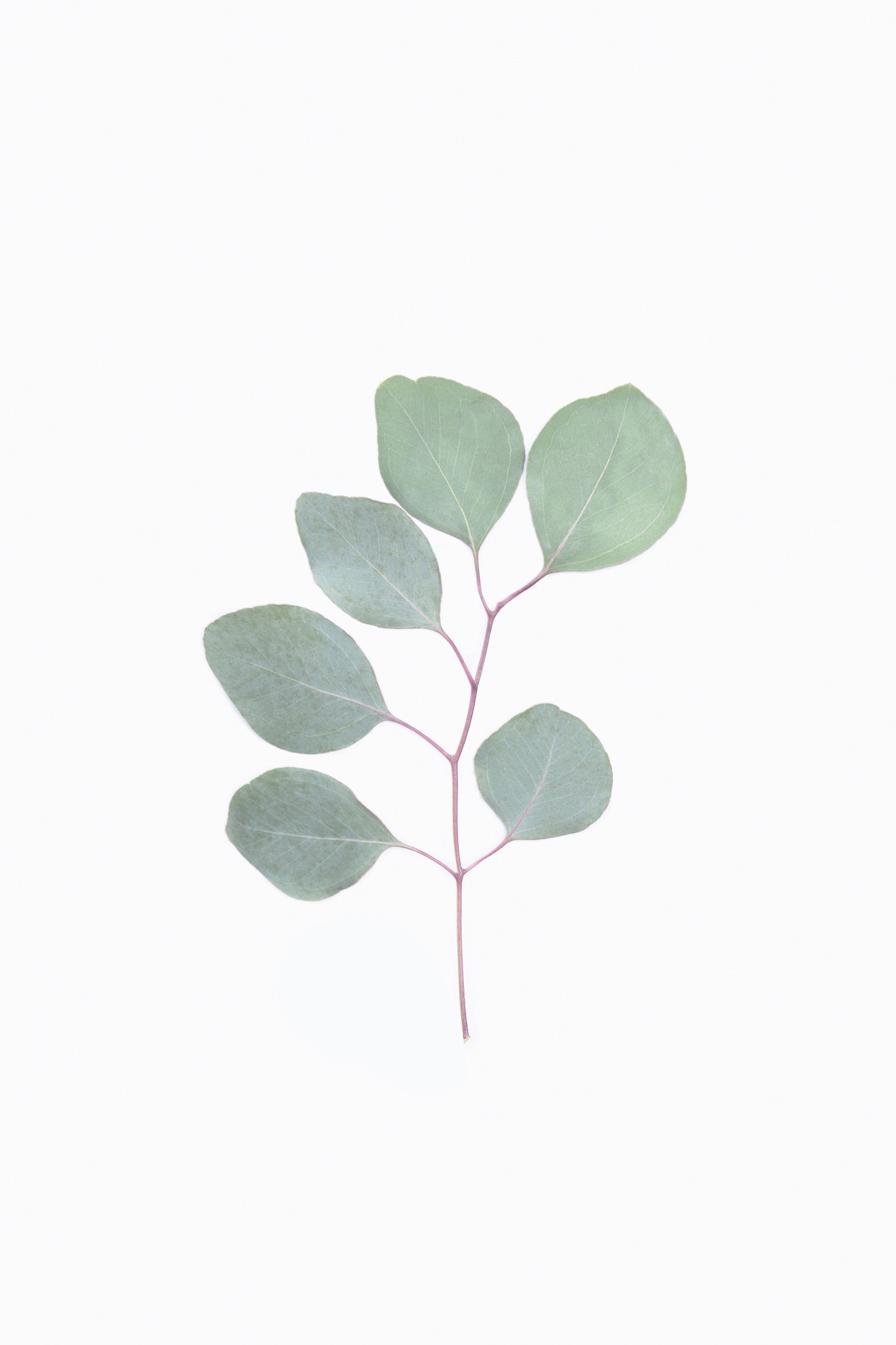 This minimalist wallpaper features a single eucalyptus sprig, delicately rendered against a pristine white background. The muted, sage-green leaves and subtle reddish stem create a calming and sophisticated aesthetic. The simplicity of the design allows for versatility in any room, from a serene bedroom to a calming office space. The image evokes feelings of tranquility and natural beauty, making it ideal for those seeking a peaceful and understated atmosphere. Perfect for adding a touch of organic elegance to any space without overwhelming the décor.