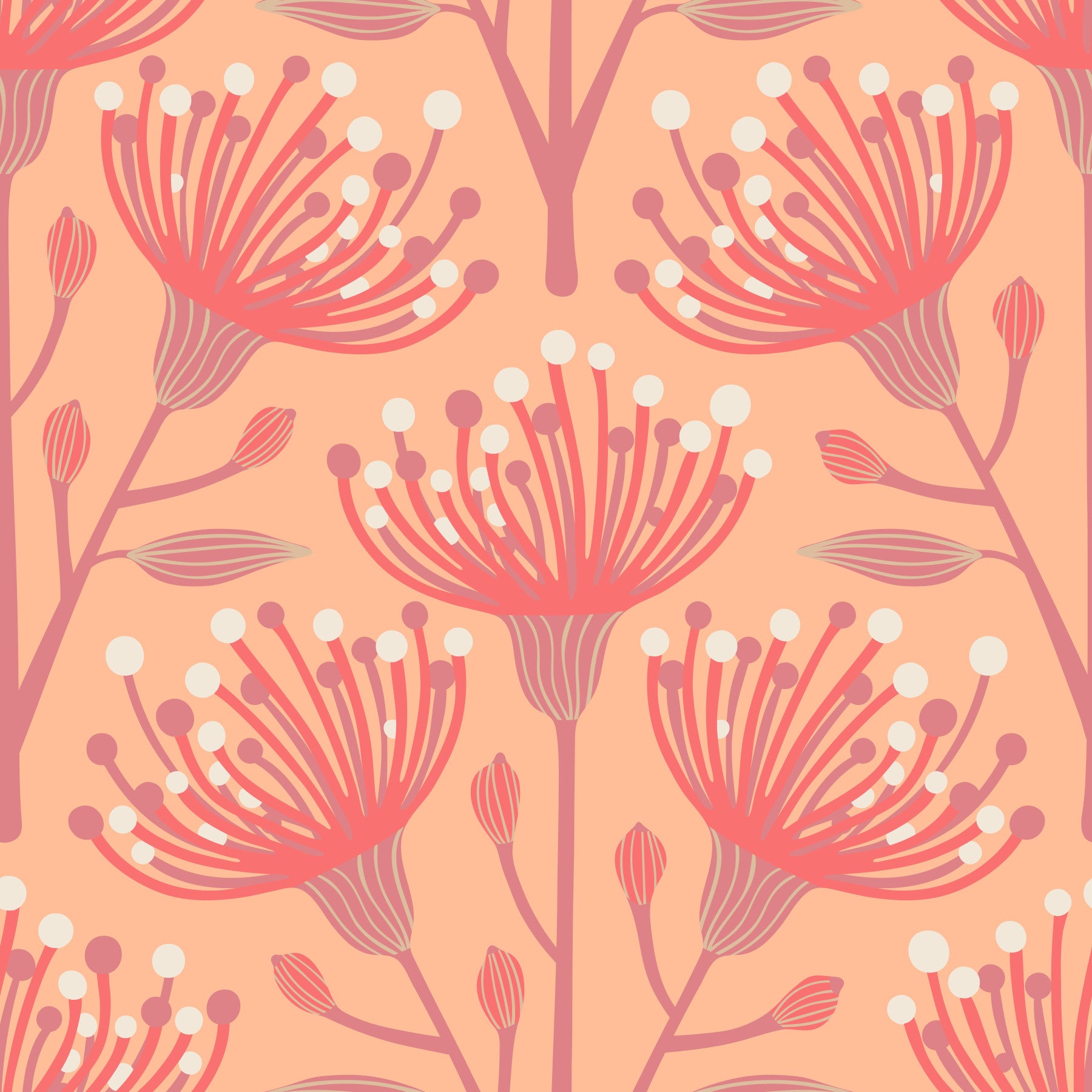 Immerse yourself in the soft allure of our 'Eucalyptus' Floral Botanical Wallpaper in Light Peach Fuzz Orange. This design showcases a harmonious blend of botanical elegance and modern artistry, featuring stylised eucalyptus flowers in a delightful palette of bright Orange and Apricot on Light Peach Fuzz Orange background. The repeating pattern creates a visually soothing and subtly vibrant atmosphere, perfect for adding a touch of warmth and sophistication to any space. The clean lines and simplified forms of the floral motifs lend a contemporary feel, while the gentle colour scheme evokes a sense of calm and serenity. This wallpaper is an ideal choice for those seeking to create a stylish and inviting environment that celebrates the beauty of nature with a modern twist. This pattern design is also available in Other Colourways too! Original wallpaper pattern design by Jackie Tahara of UnBlink Studio.
