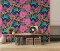 Infuse your home with the charm of this exotic bloom wallpaper. Featuring colourful parrots and vibrant floral patterns, this wallpaper for walls adds a touch of playfulness to your interior decor. With its bold combination of pink, purple, turquoise, and orange hues, this design creates a focal point in any room, bringing an element of nature indoors. Perfect for bedrooms, living rooms, or nurseries, this unique wallpaper offers a visually stimulating and aesthetically pleasing backdrop that complements a variety of design styles.