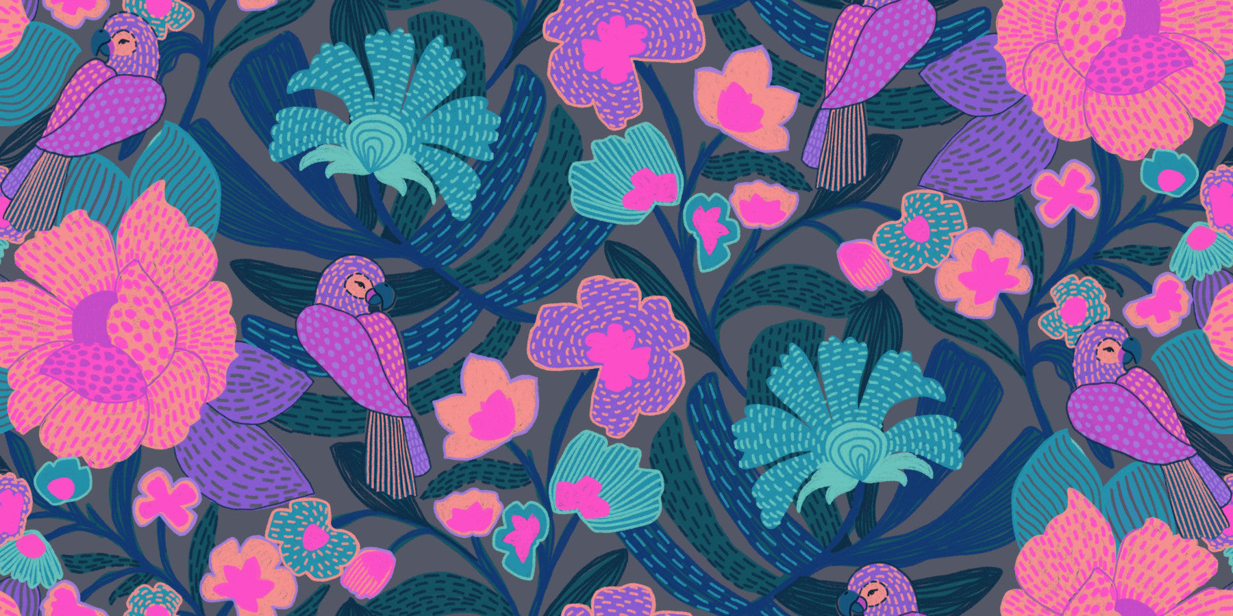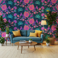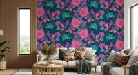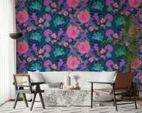 Bring a burst of colourful nature indoors with this eye-catching wallpaper for walls. The playful parrots amid vibrant, oversized blooms inject a lively, artistic flair into any room. The design features an eye-catching display of pink, orange, and teal flora, set against a dark backdrop to enhance the vibrant hues. This wallpaper works wonderfully in living rooms, bedrooms, or even bathrooms. It elevates the aesthetic of interiors, fostering an inviting atmosphere of bold beauty and unique expression. The lively pattern enhances the décor and enlivens the senses, turning spaces into vibrant sanctuaries.