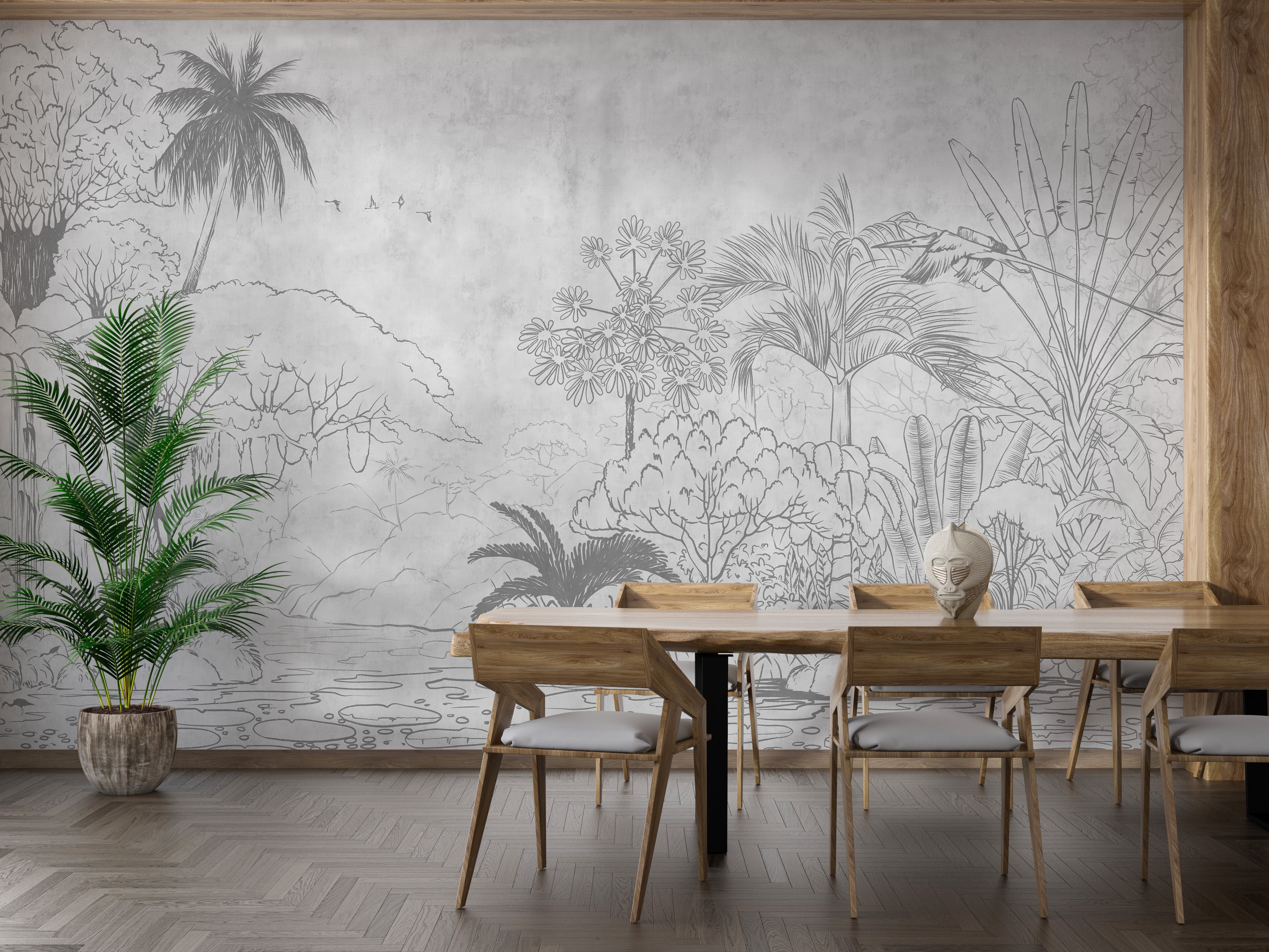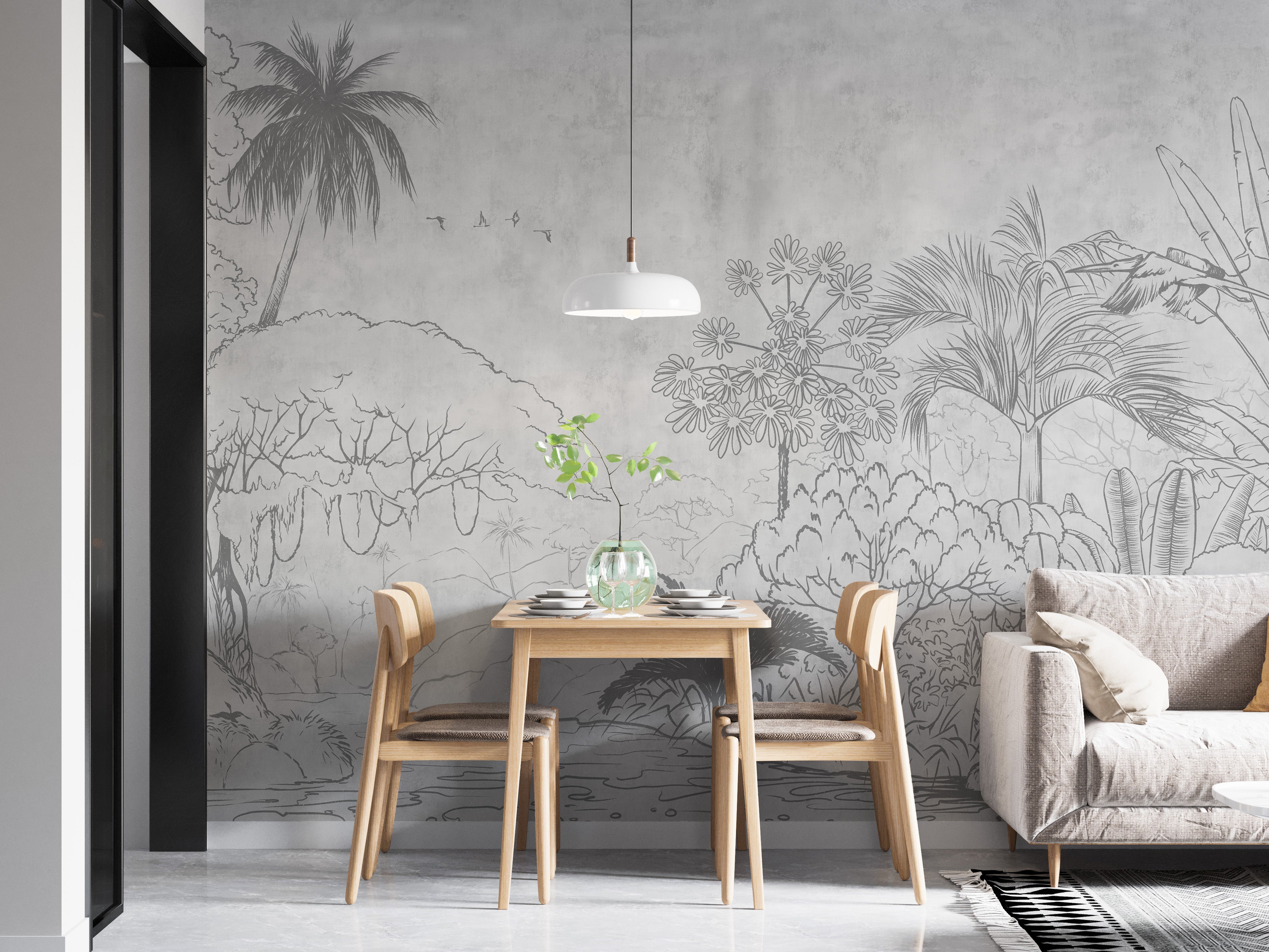 Enhance any room with the tropical nature landscape grey colour mural wallpaper, a stunning depiction of natural beauty in a sophisticated grey palette. This landscape wallpaper merges the allure of lush tropical scenery with the elegance of grey tones, creating a unique visual experience. Ideal for various settings, from residential to commercial spaces, it adds a touch of nature's charm while maintaining a chic, contemporary look. The intricate details of the tropical landscape are beautifully captured, offering a captivating view that draws the eye. This grey wallpaper is a decorative element and a conversation starter, bringing a piece of the serene outdoors inside. Its high-quality material ensures durability and vibrancy, making it a lasting addition to any interior. Whether for a living room, bedroom, or office, this mural wallpaper is perfect for those seeking to combine natural themes with modern design sensibilities.