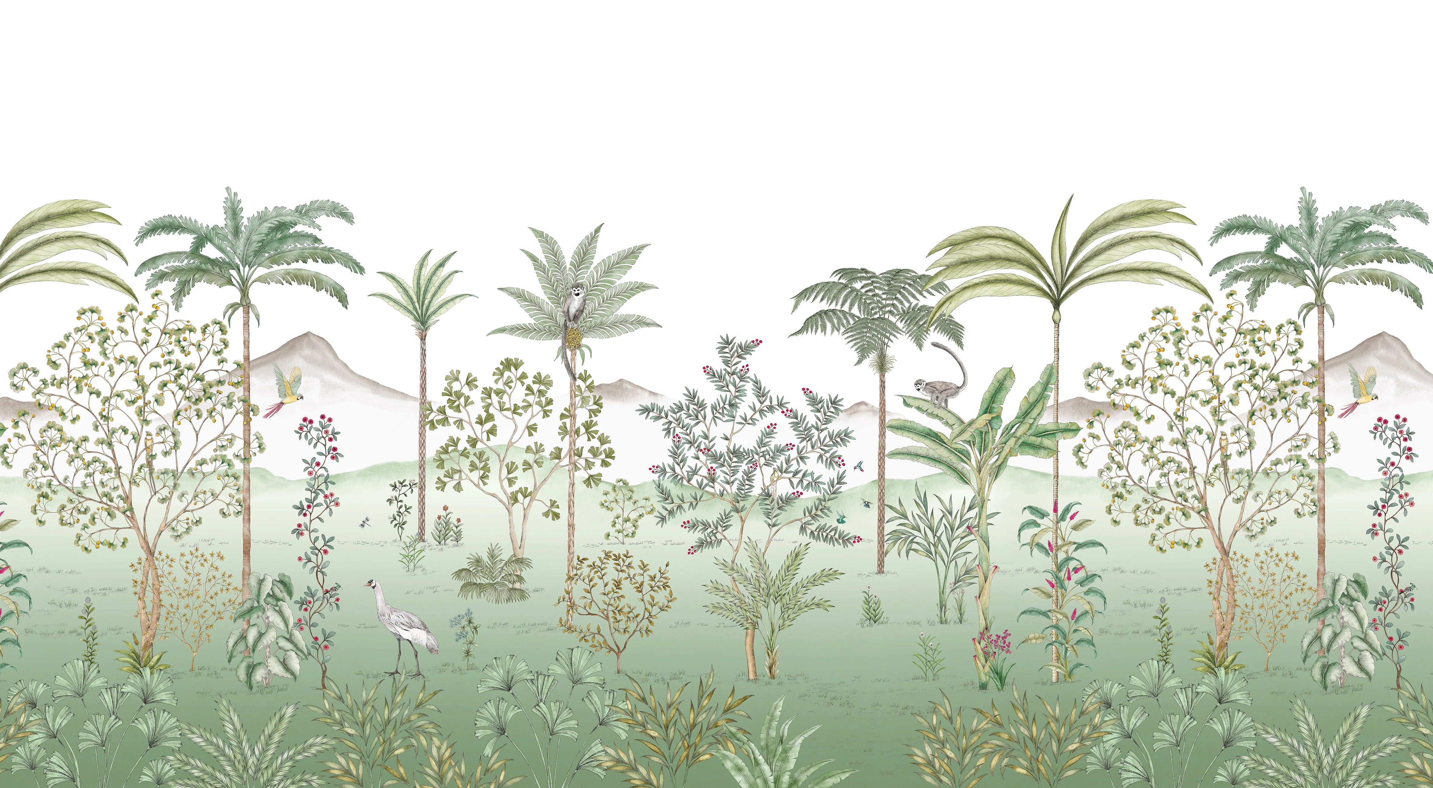 Create an inviting nursery environment using the exotic tropical wall mural. Featuring lush greenery and tropical elements, this mural brings the vibrancy of nature indoors. Ideal for nurseries, it provides a fresh, calming backdrop for your little one. Easy to apply and made from high-quality materials, this nursery wallpaper ensures durability and style. The detailed illustrations of tropical plants and animals captivate the imagination, making it a perfect choice for stimulating your baby's visual development. Order now to enhance your nursery's atmosphere with a unique tropical touch. This mural not only beautifies the room but also provides a serene and peaceful environment, essential for a good night's sleep.