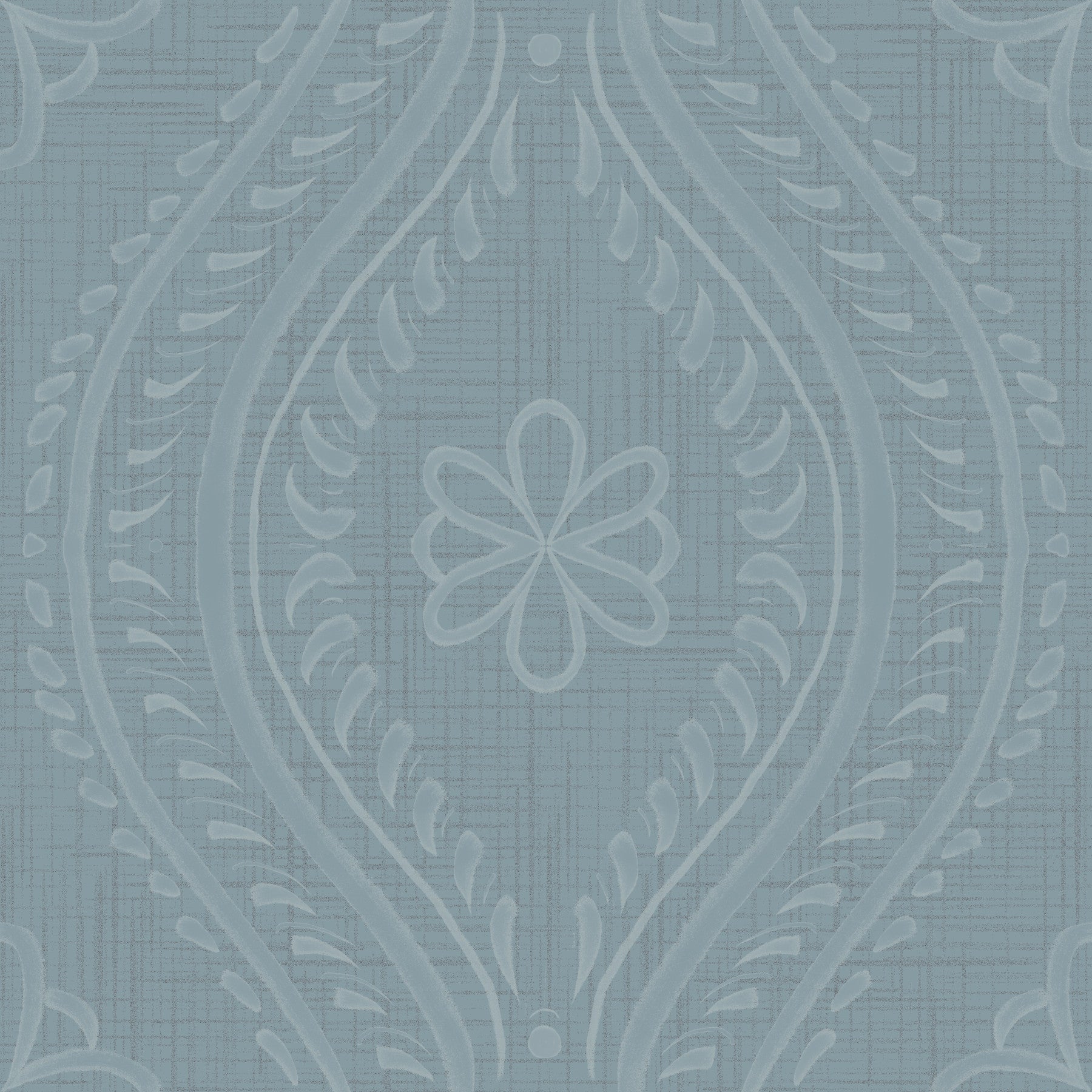 Faded Ogee Damask wallpaper in Arona blue-grey