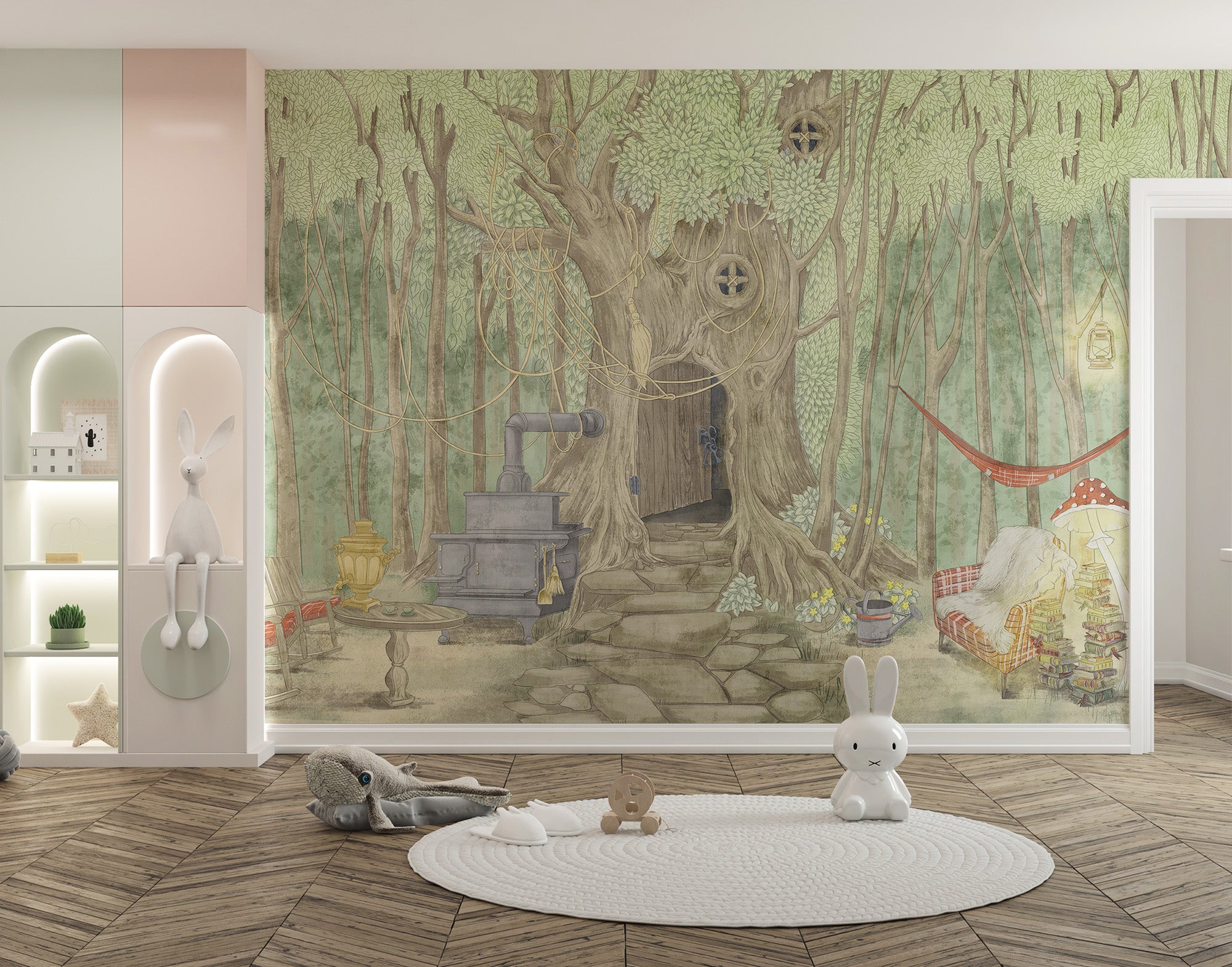 Fairyland cascade wall mural offers a captivating scene that brightens any nursery, making it more than just a background but a gateway to a magical world. Featuring whimsical elements like mystical trees and gentle waterfalls, this wallpaper captivates children's imaginations and becomes a stunning focal point. It complements a wide range of nursery themes, from traditional to modern, ensuring a perfect backdrop for storytelling and playful adventures. Available in various sizes, it is crafted to fit seamlessly into any room dimensions, making it a versatile choice for any home.