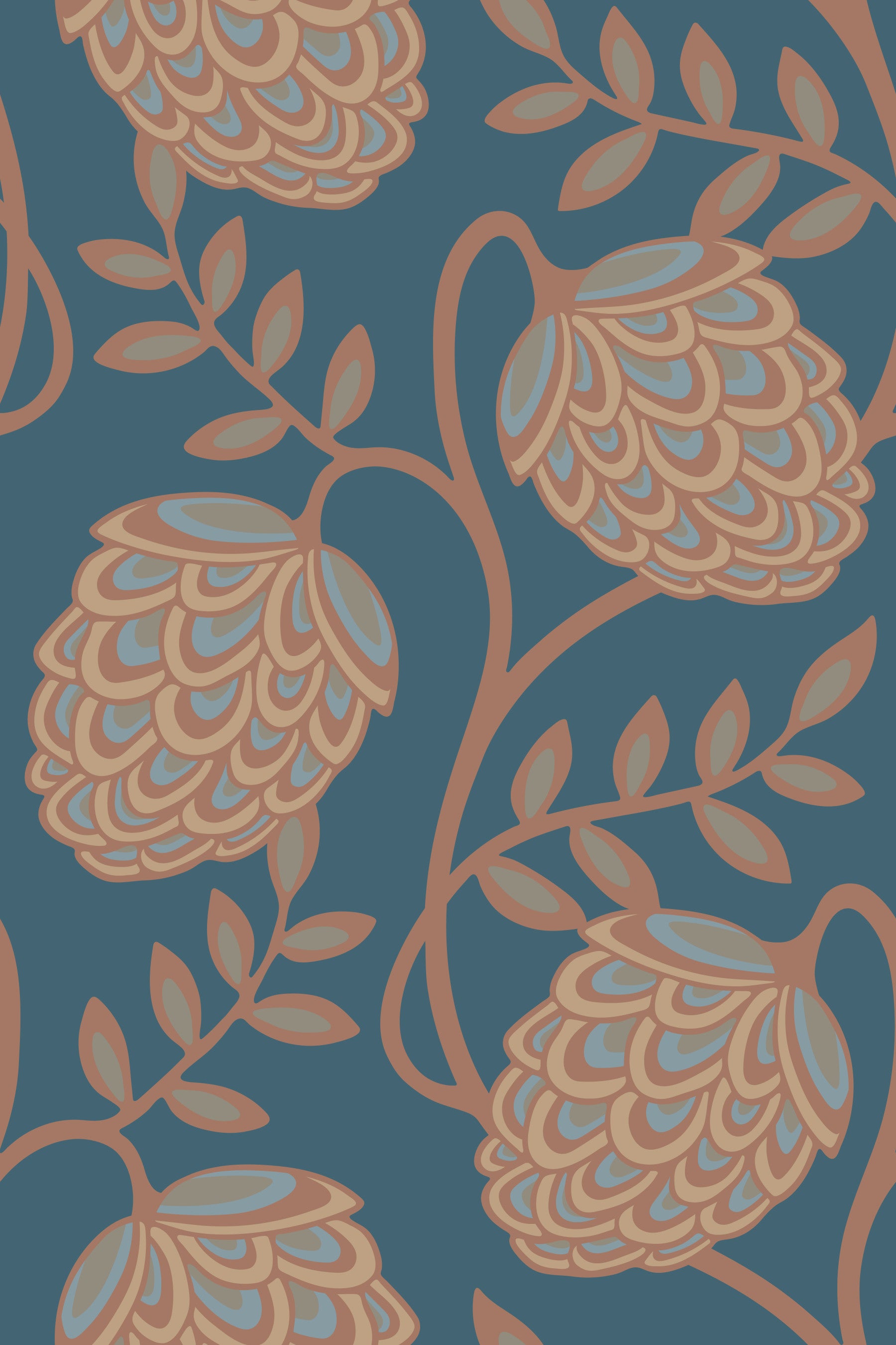 Immerse yourself in the enchanting allure of Fantasia a wallpaper design that seamlessly blends botanical wonder with modern Art Nouveau flair. This organic design features stylized flower vines and leaves crafted with a gentle, curving aesthetic that is a modern twist on classic Art Nouveau style. The sophisticated palette of mocha mousse brown, beige and blue creates a soothing, warm and elegant ambiance, perfect for bedrooms, living rooms, or any space desiring a touch of refined and earthy elegance. This pattern design is also available in Other Colourways too! Original wallpaper pattern design by Jackie Tahara of UnBlink Studio.