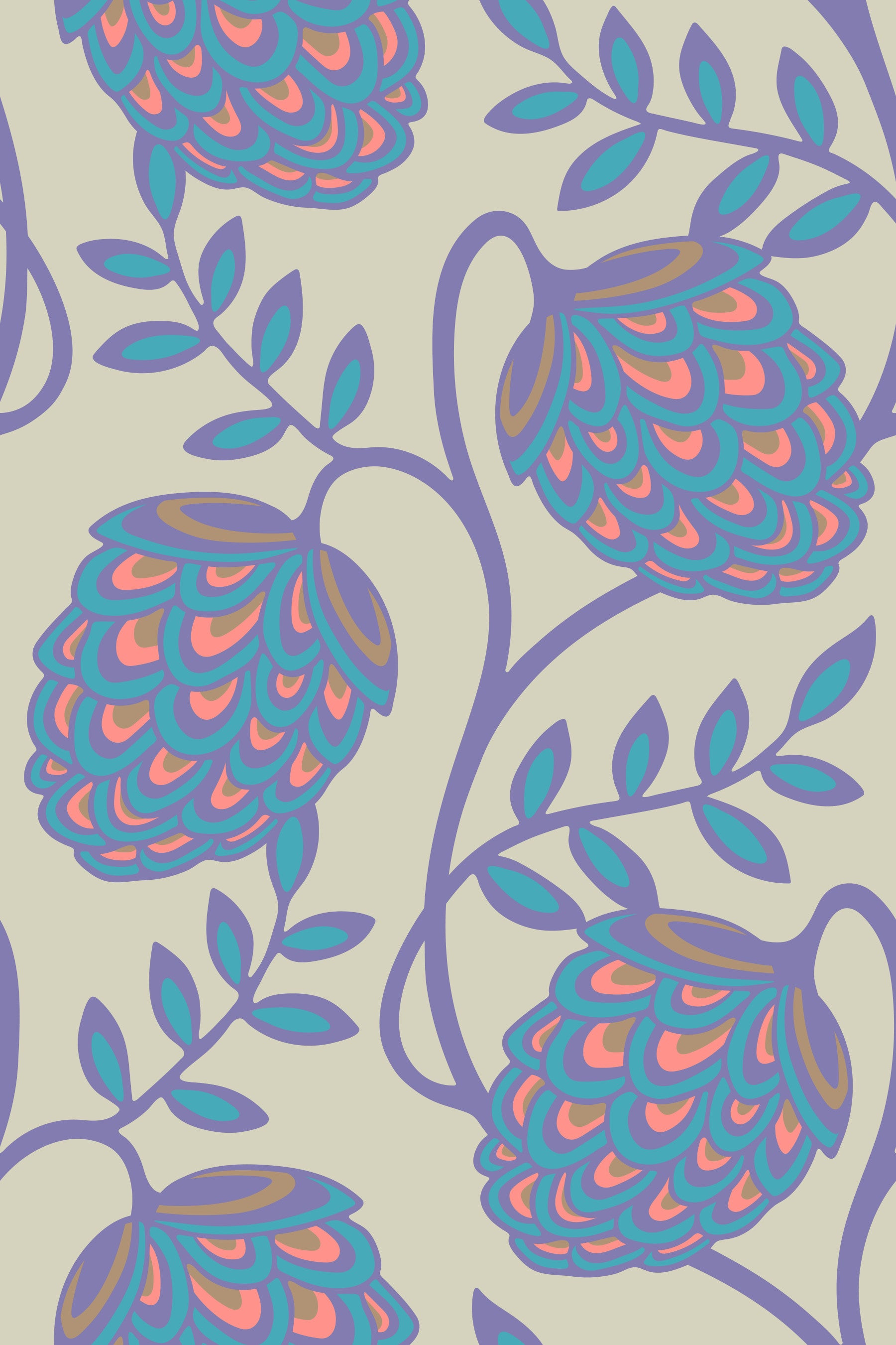 Immerse yourself in the enchanting allure of Fantasia a wallpaper design that seamlessly blends botanical wonder with modern Art Nouveau flair. This organic design features stylized flower vines and leaves crafted with a gentle, curving aesthetic that is a modern twist on classic Art Nouveau style. The gentle delicate palette of pastel colours, including lavender purple, pink and blue, on cream creates a calming fresh ambiance, perfect for bedrooms, living rooms, or any space needing a pop of bright energy. This pattern design is also available in Other Colourways too! Original wallpaper pattern design by Jackie Tahara of UnBlink Studio.
