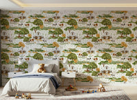Bring a touch of the countryside into your home with this charming farmhouse design by Uta Naumann. A watercolour scene unfolds, featuring barns, cows, sheep, goats, and chickens on a grassy field. The soft greens and browns create a relaxing, pastoral feel. The detailed brushstrokes add an artistic touch, making it a beautiful wallpaper for walls in nurseries, kids' rooms, kitchens, or any space where you want to capture the cosy feel of rural life. This design works wonders in creating a warm, inviting ambiance.