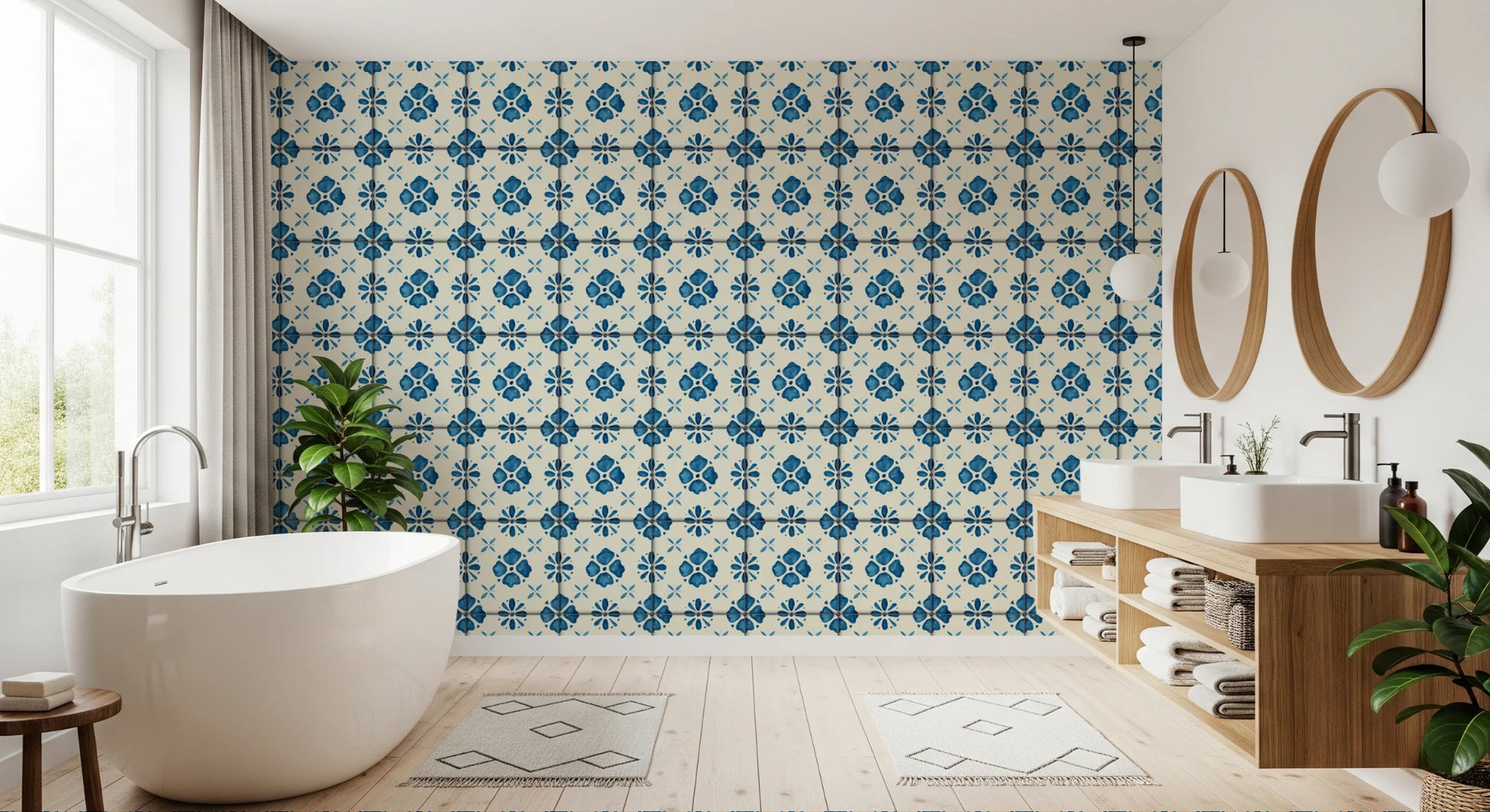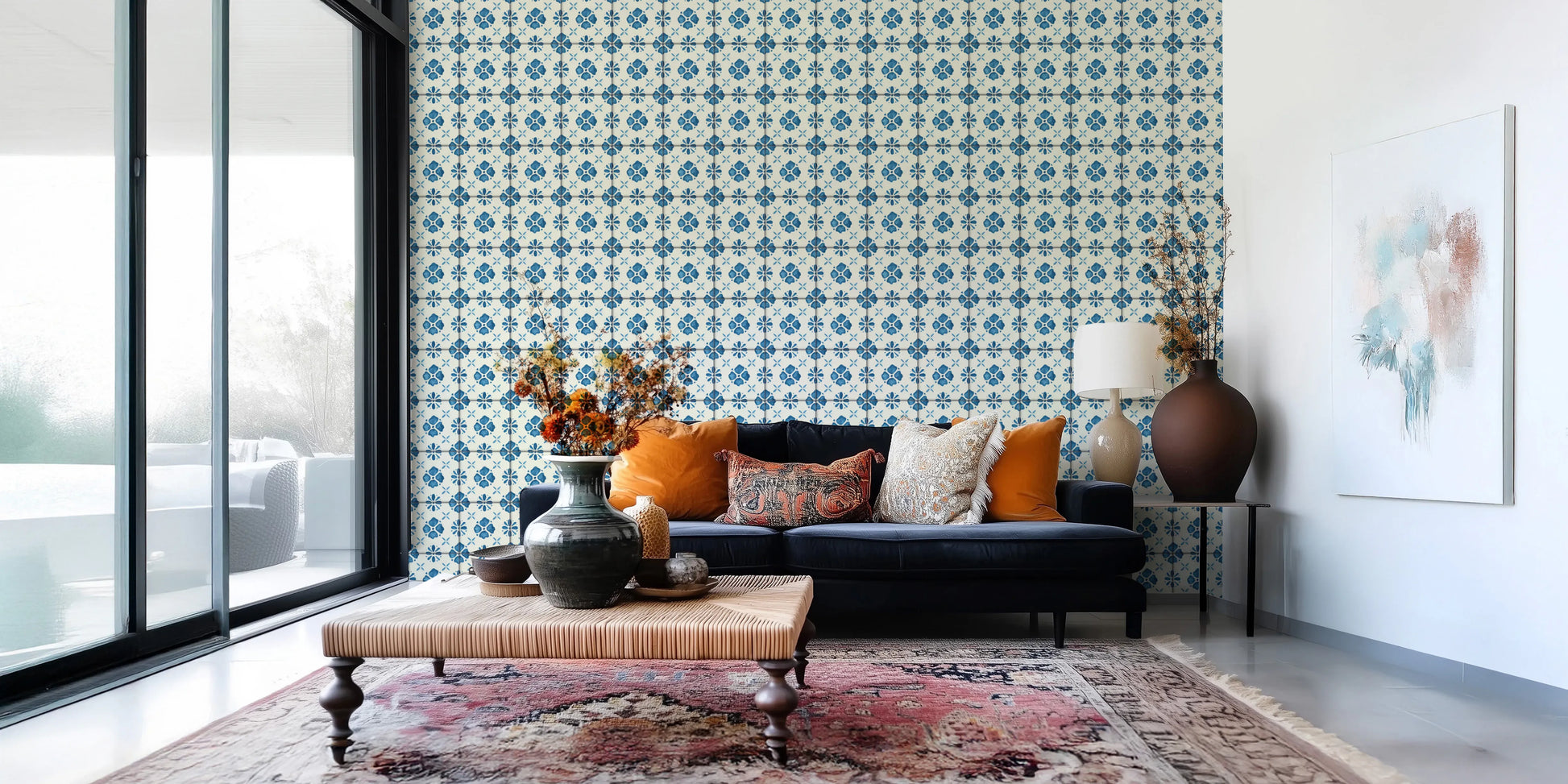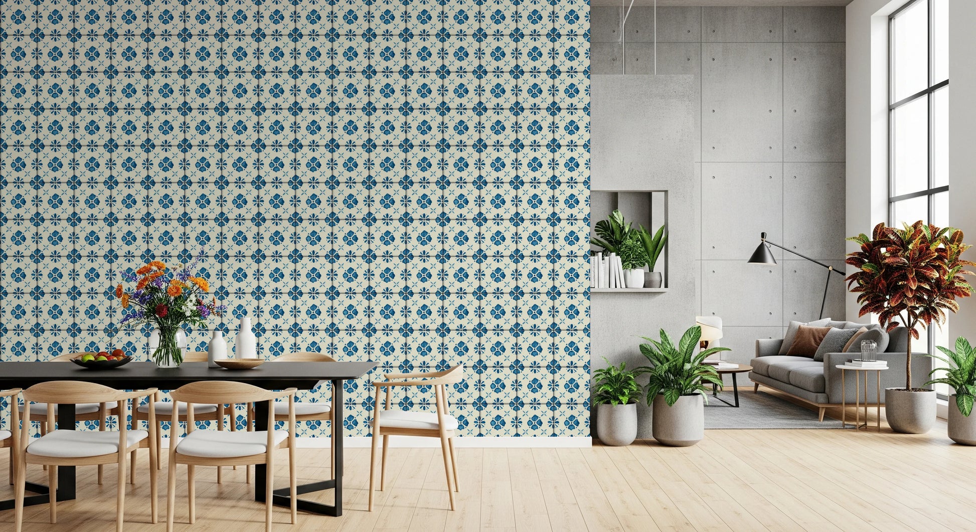 Farmhouse Classic Backsplash Blue Wallpaper⁠