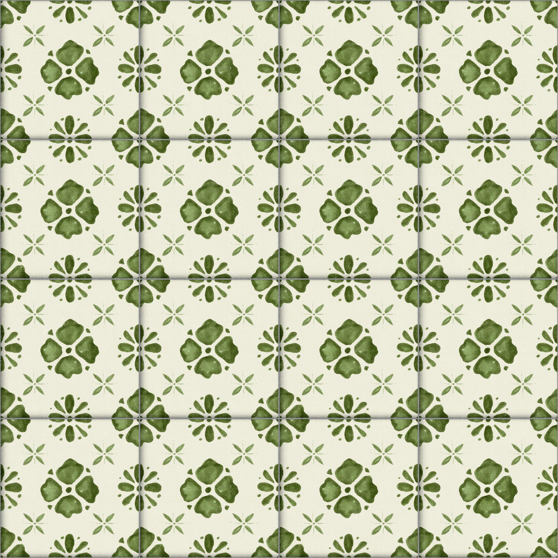 Evoke a sense of timeless charm with the Farmhouse Classic Backsplash Olive wall décor. This design showcases a delightful pattern of stylised floral motifs in a refreshing olive green hue, set against a creamy, neutral background. Inspired by traditional farmhouse aesthetics and classic tilework, this piece brings a touch of rustic elegance to any room. The pattern offers a blend of botanical symmetry and vintage appeal, creating a warm and inviting atmosphere. Imagine adorning your kitchen, bathroom, or hallway with this piece, where it serves as both a decorative accent and a nod to simpler times. This backsplash brings a sophisticated, yet understated, touch of the countryside into your home. The weathered textures and organic patterns within the olive designs add depth and character to your space, making it a conversation starter while exuding a welcoming and harmonious presence.