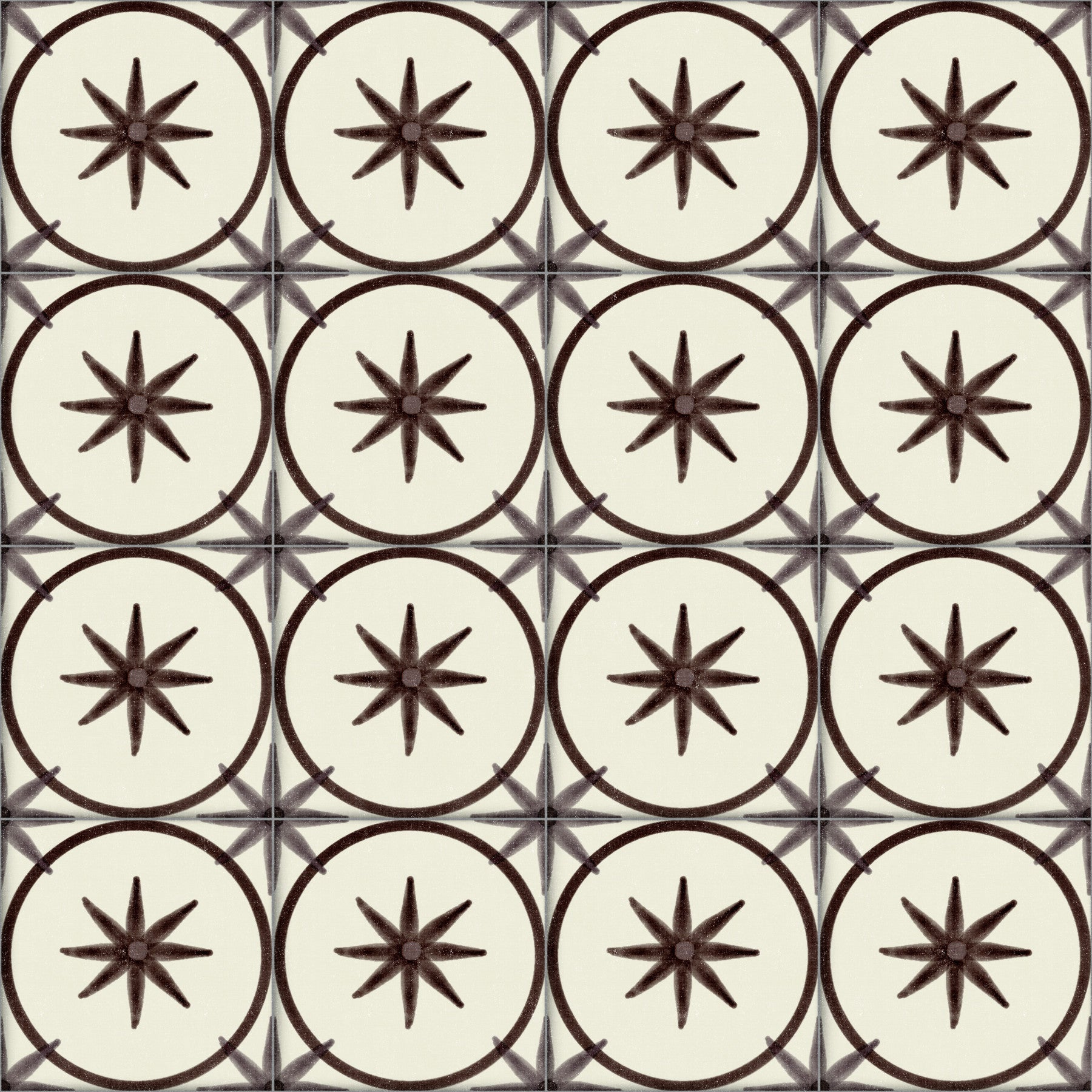 The Farmhouse Timeless Backsplash Choco Wallpaper brings a classic and symmetrical aesthetic to any modern apartment. This design features a repeating eight-pointed star motif enclosed within circles, mimicking the look of traditional ceramic tiles. The warm chocolate brown pattern stands out against the clean cream background, creating a cozy and rustic atmosphere. This wall decor is for those who appreciate a timeless style that blends geometric precision with a farmhouse feel. The pattern is printed with high-quality detail to ensure a realistic tile effect on your wall surface. Using this wallpaper allows for a clean and organized visual appeal that remains stylish for years.