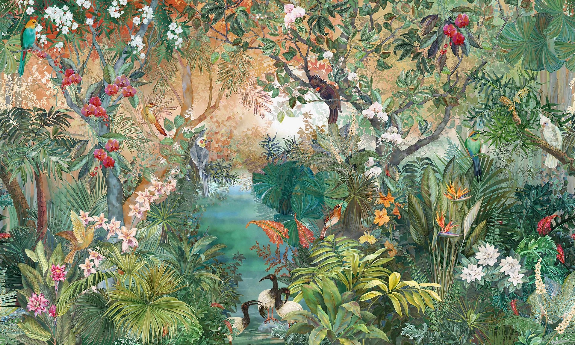 Step into a world of lush greenery with the feathered canopy chronicles mural wallpaper. Crafted meticulously to mirror the vibrant intricacies of a tropical forest, natural wallpaper is a visual treat for nature lovers. The design, characterized by a cascade of feathers intertwined with dense foliage, brings the magic of the tropical forest wallpaper right into your living space. Whether you're seeking a rejuvenating backdrop for relaxation or aiming to make a bold decor statement, this mural captures the very essence of nature's splendour. Dive deep into the chronicles of the feathered canopy and let your interiors resonate with the enchanting rhythms of the tropical realm.